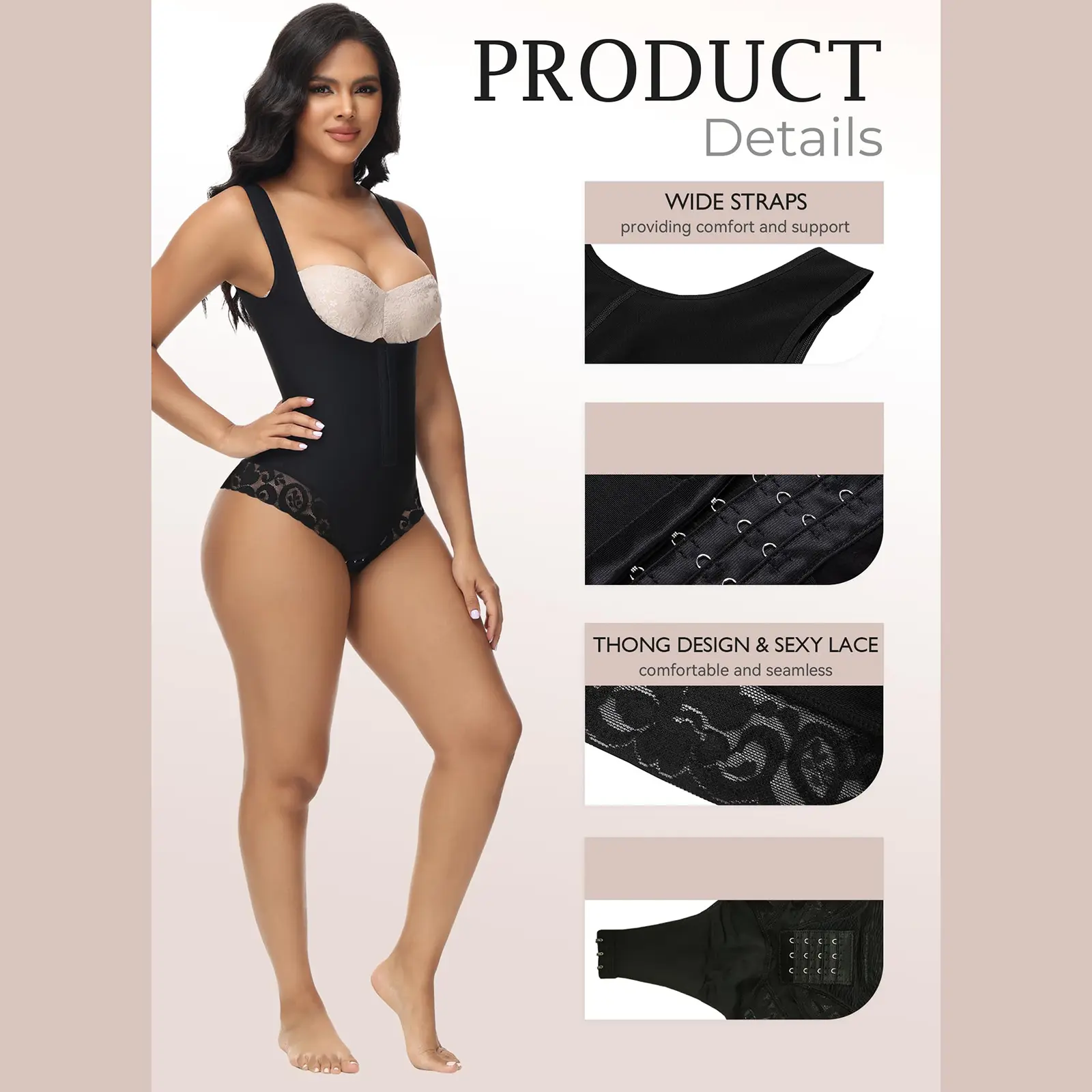 This full body shapewear has a two-way control design on the front (lining buckle + external zipper closure). The faja shapewear for women's targeted abdominal control can effectively smooth your abdomen and reduce your waistline. Instantly transforms your body shape, giving you a true hourglass figure.