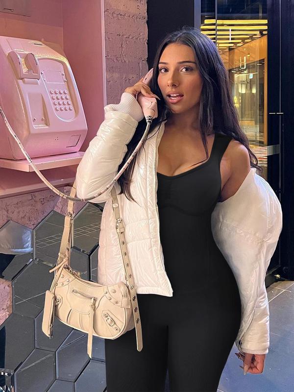 Women's Solid Shapewear Jumpsuit, 1 Count High Stretch Tummy Control Shaper, Ladies Shapewear for All Seasons