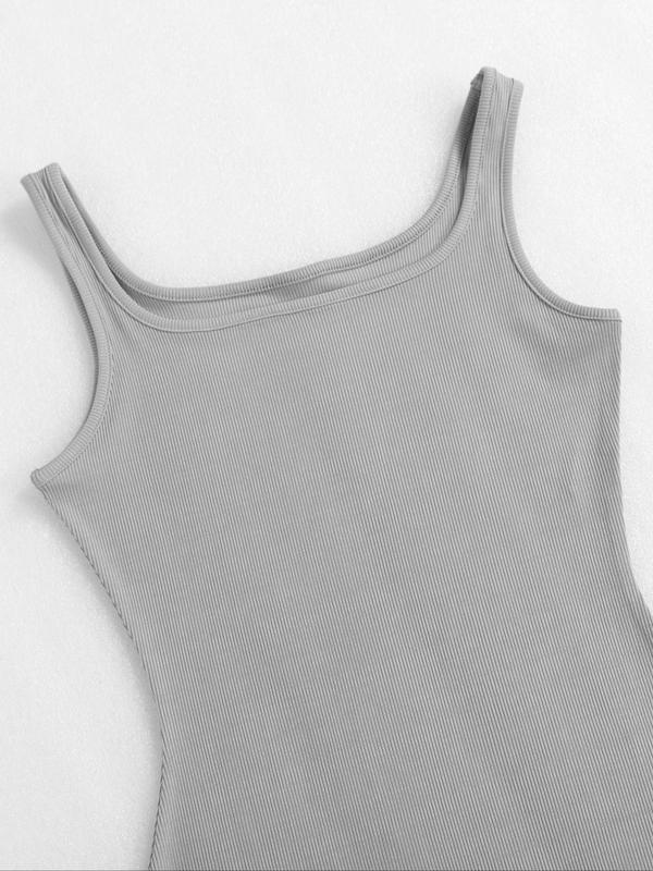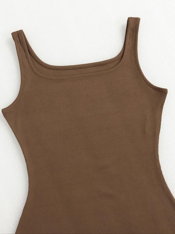 Women's Solid Color Ribbed Square Neck Tank Shapewear Knit Romper, Elegant Casual Comfy Thigh Slimmer Seamless Sleeveless Shaper Bodysuit for Daily Wear, Ladies Shapewear for All Seasons, Womenswear, Tummy Tuck Garment