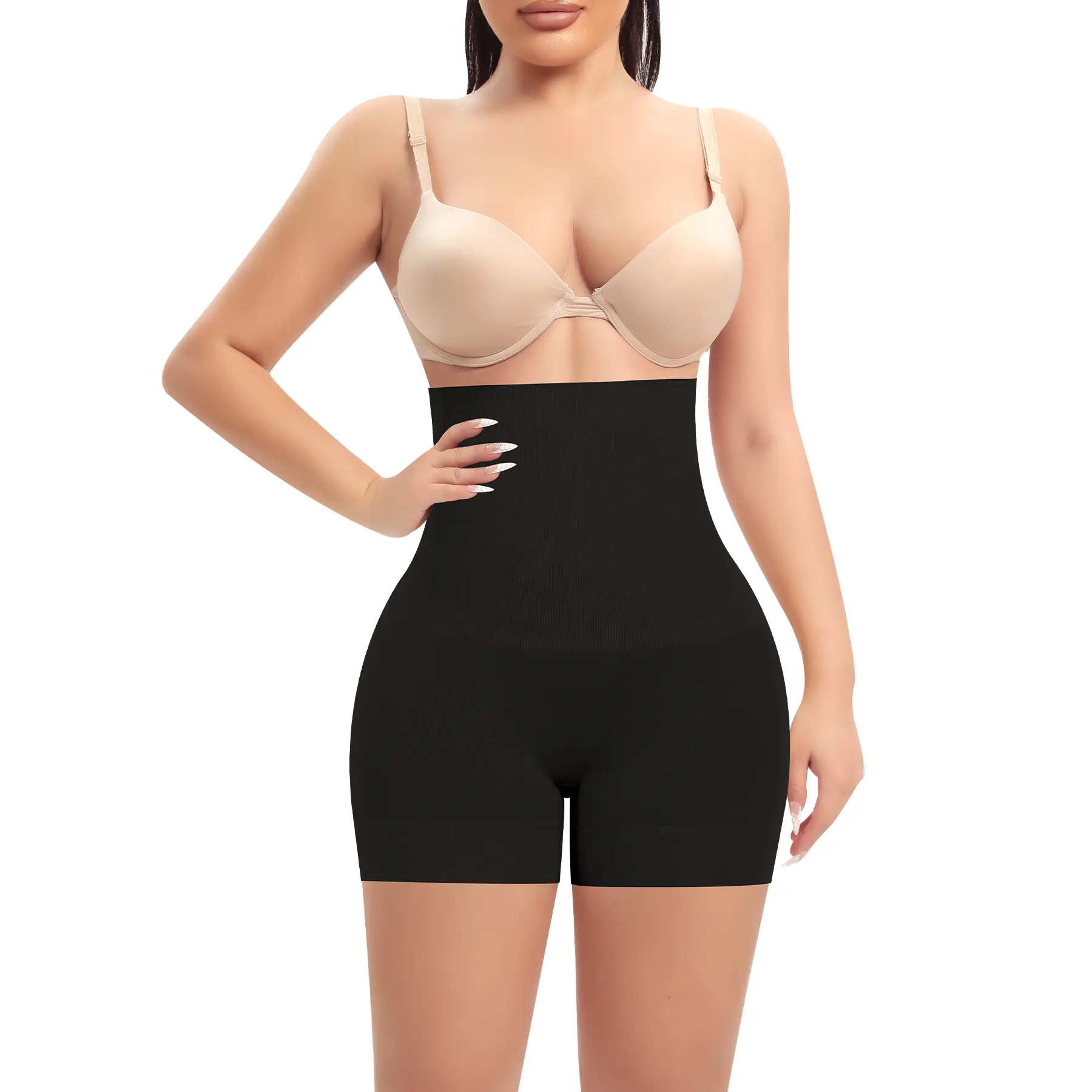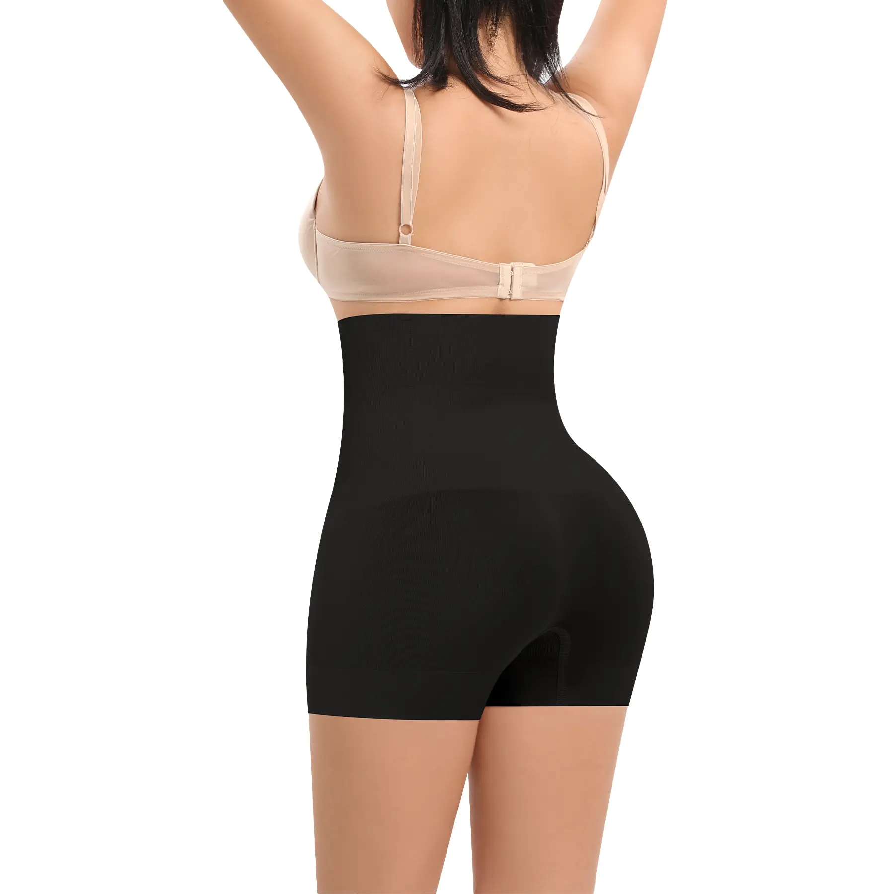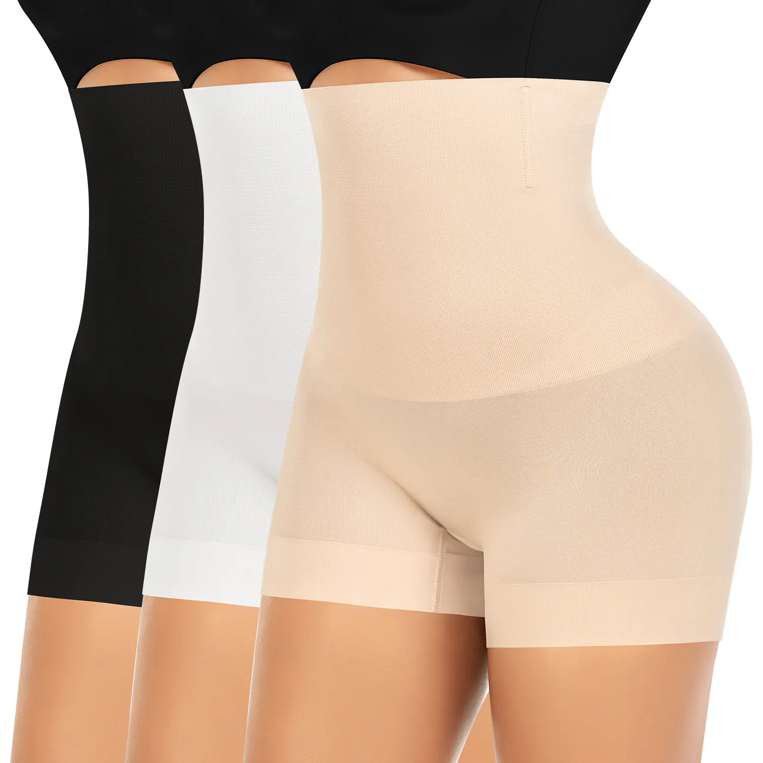 ·High Waisted Shaper Shorts >> The butt lifter shapewear shorts with 2 double-layer design on upper belly can better smooth your tummy, helping to tighten and lift your buttock in a natural way. You can wear this tummy control shapewear boyshorts as high wasited slip shorts.