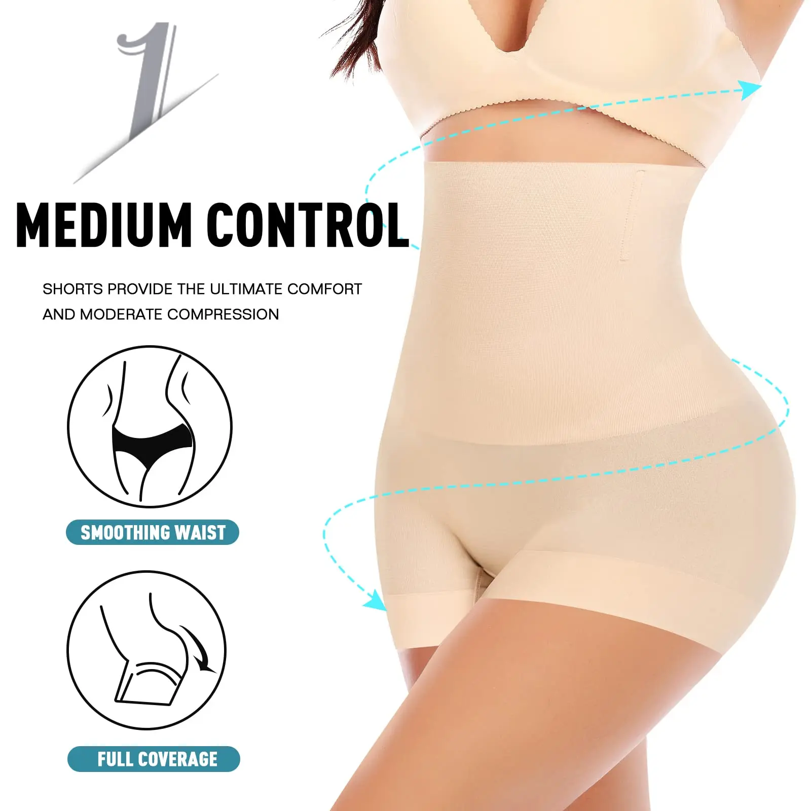 ·Thigh Slimmer & Anti Chafing >> The Upgrade shaping shorts for women with high rise and full coverage, and the stretchy fabric helps to tighten the extra fat on the thighs and prevents the hem from curling.Non-binding legs for added comfort and flexibility.
