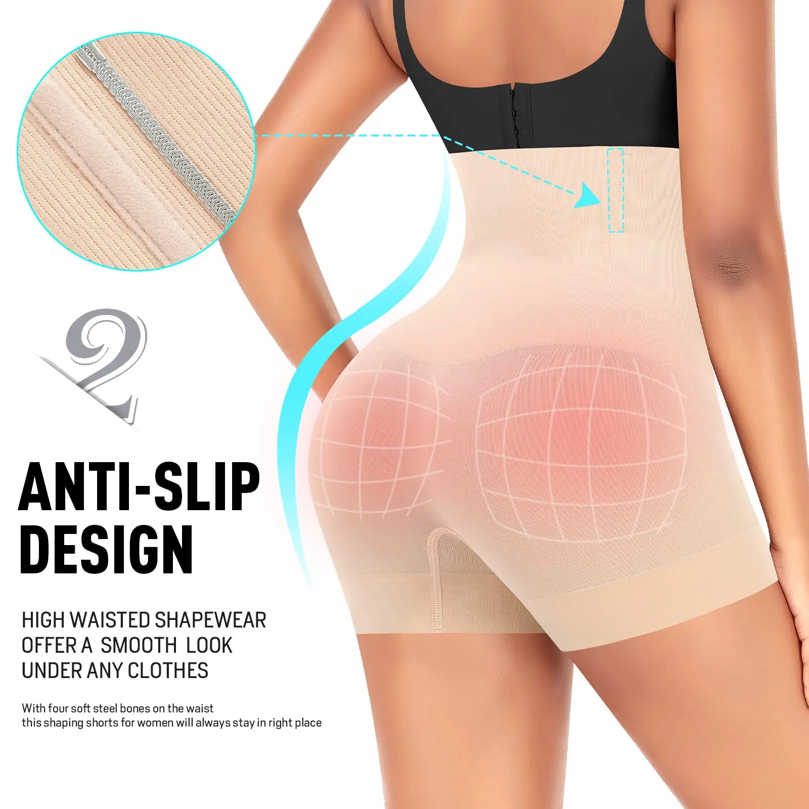 ·No Roll Shapewear >> Our tummy control shorts has 4 steel bones keep it always stay in right place,no roll down and shape you perfectly all the time.It is invisible for wearing under clothes without worrying about any lines, no one will know you are wearing it, but notice your enhanced sexy charming natural curve.