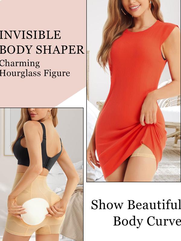 5. Women's Solid High Waist Seamless Removable Pad Shapewear Shorts, High Stretch Tummy Control Shapewear Clothing, Ladies Shapewear Bottoms for All Seasons