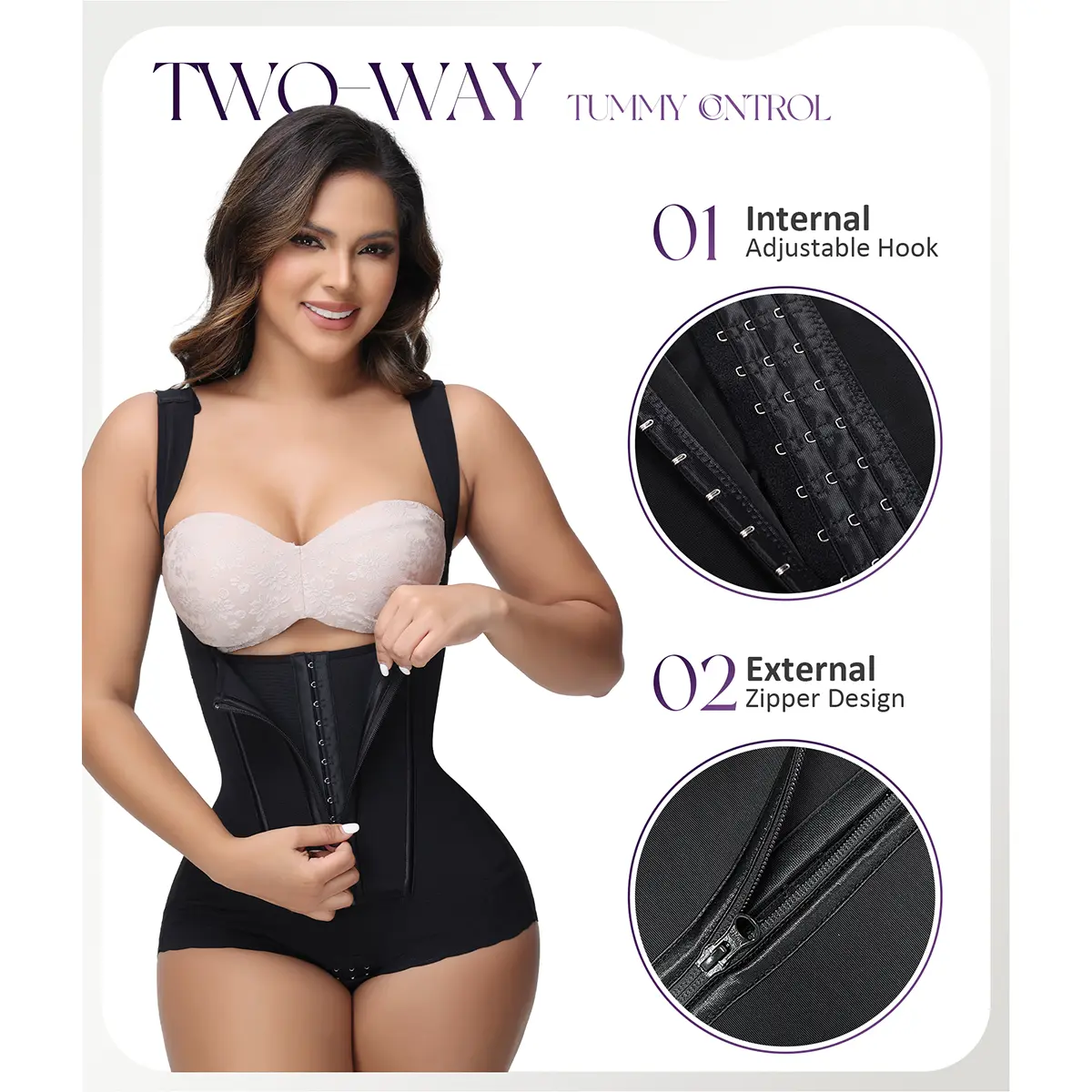 The girdles for women body shaper adopts a zipper design and uses 3 rows of adjustable catch inside, so you can freely adjust the tightness according to comfort.