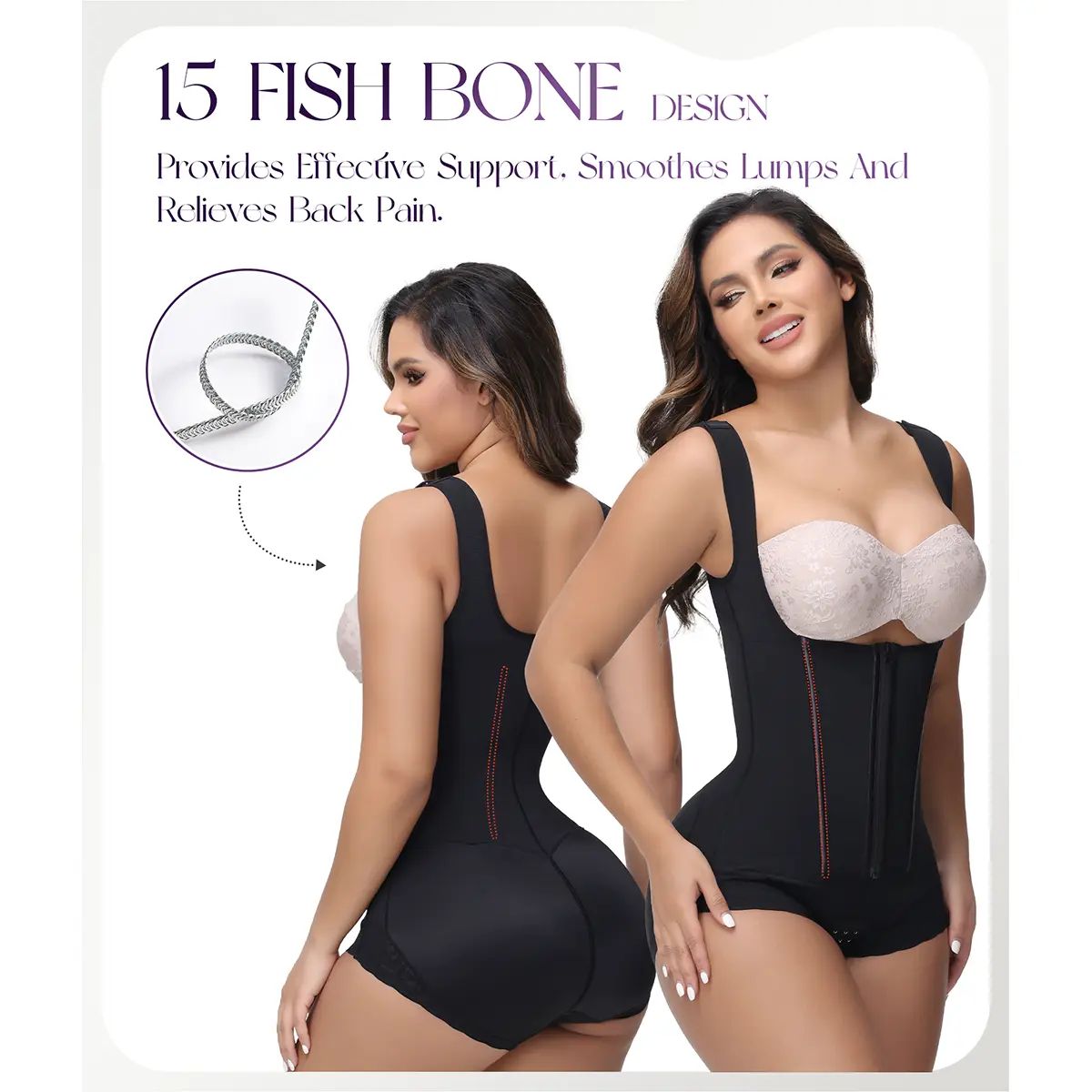 The U-shaped design of the bust of the faja pushes up the breasts, and the open design allows you to freely match your favorite bra.