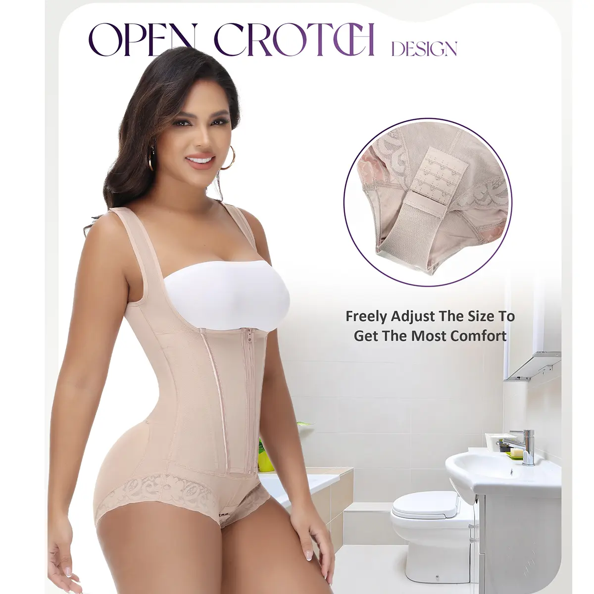 The crotch of the waist trainer bodysuit is designed with an open crotch, making it easier and more convenient to use the bathroom and toilet.