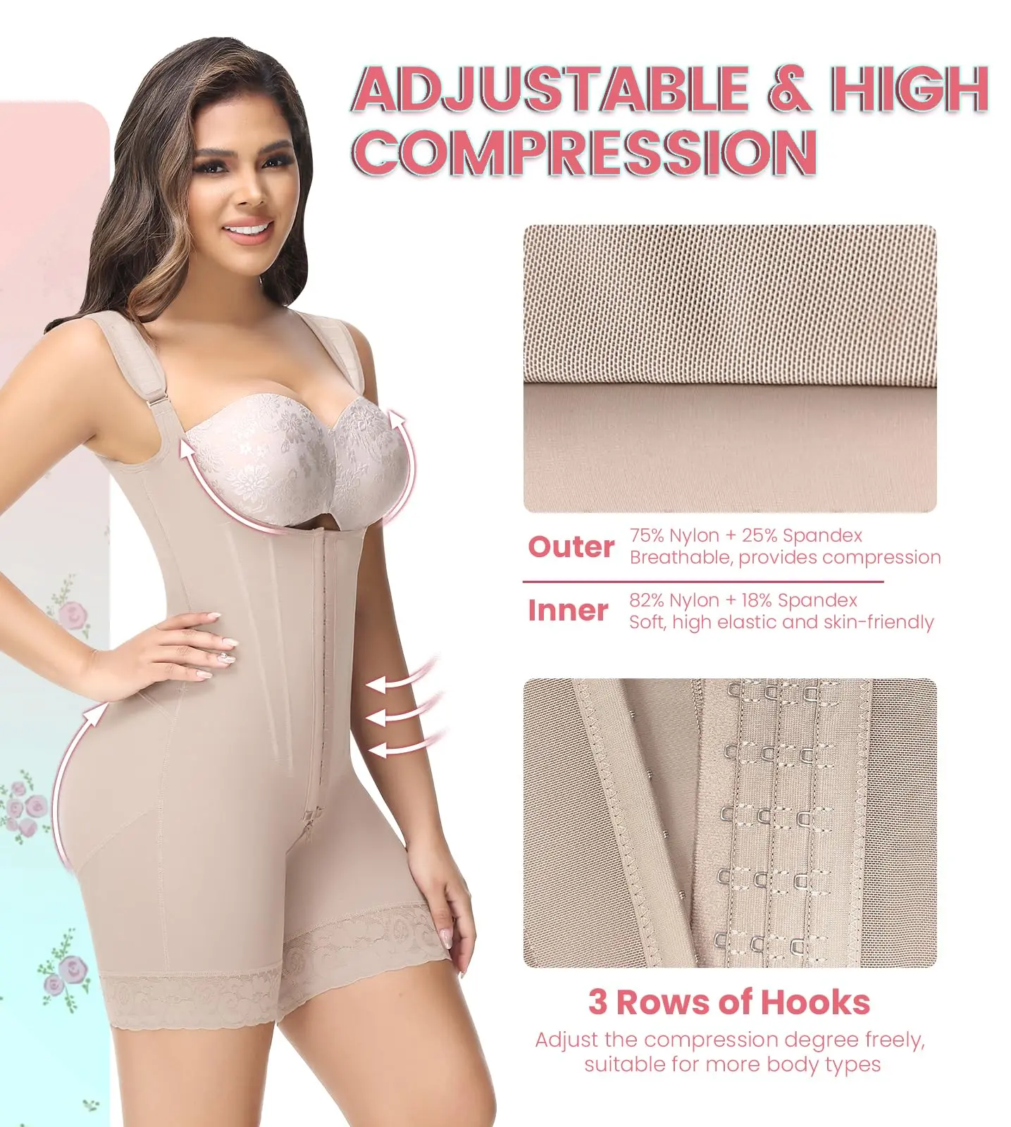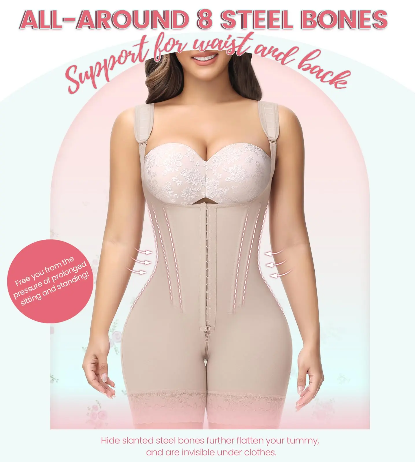 ·AVAILABLE IN VARIOUS OCCASIONS: Whether you're attending a wedding, party, date, club event, or simply want everyday shaping. The 3-level adjustable hooks allow you to freely adjust the shaping intensity.