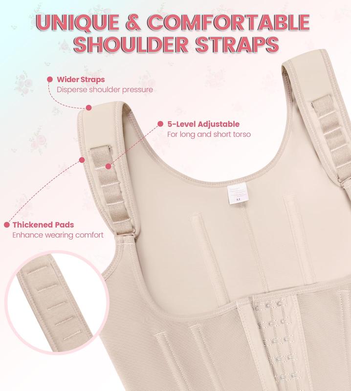 ·HUMANIZED DESIGN MEETS COMFORT: The wider shoulder straps and the padded lining improves the wearing comfort, and the 5-level adjustable shoulder design makes the fajas colombianas moldeadoras suitable for women with long and short torso.