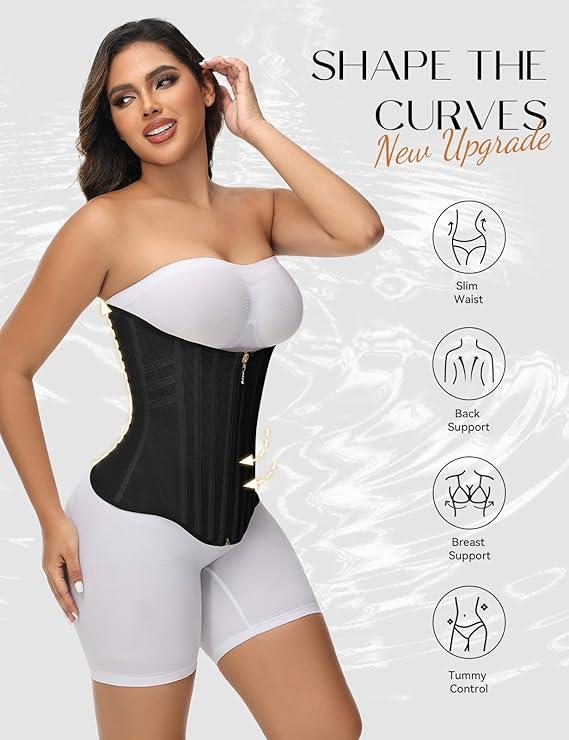 ·Body Shaper Tummy Control Corset: This waist trainer has double tummy control effect and an adjustable zipper with 3 rows of hooks for different levels of compression.
