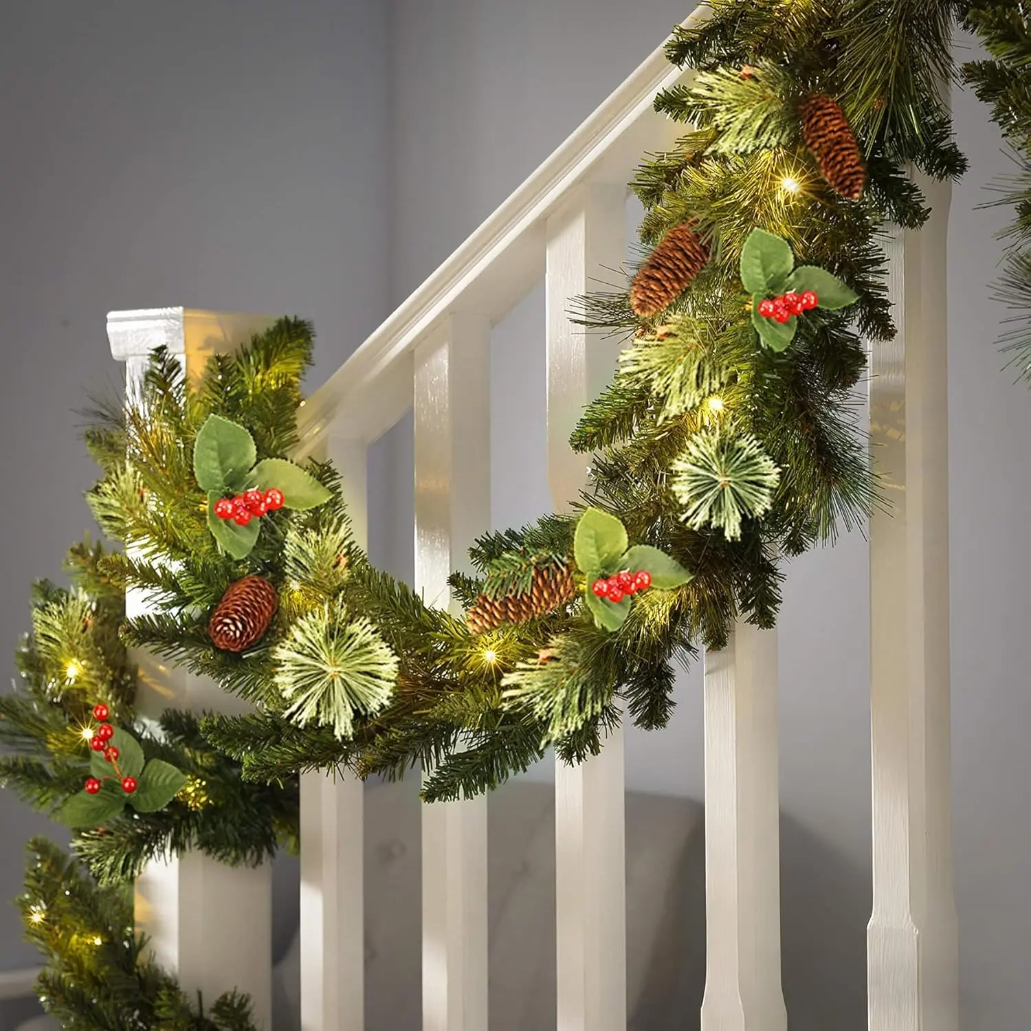 Christmas is coming and I can't wait to start buying things, and I like this one because it looks quite tangled in the stair railings, with some beautiful lights🤩💫 and it's not only useful for that but it can also be done as a part of the fireplace and as a wreath..