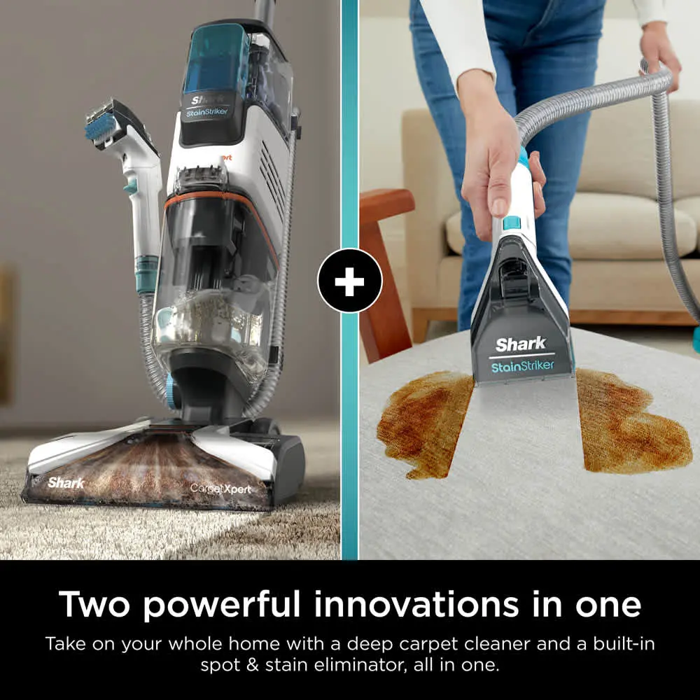 ·HANDHELD SPOT & STAIN ELIMINATOR: The first and only deep carpet cleaner with a built-in spot and stain remover designed to extend and clean stairs, carpet, upholstery and other isolated stains.STAINSTRIKER TECHNOLOGY: Two unique chemicals mix and activate on contact in the handheld tool to unleash the power of OXY for 20X more stain-striking power* delivering the best tough stain elimination**, no premix required.CARPETXPERT TECHNOLOGY: Combines the action of a high-speed brushroll, PowerSpray high-pressure spray and the strongest Shark suction to deliver unbeatable dirt and grime removal‡