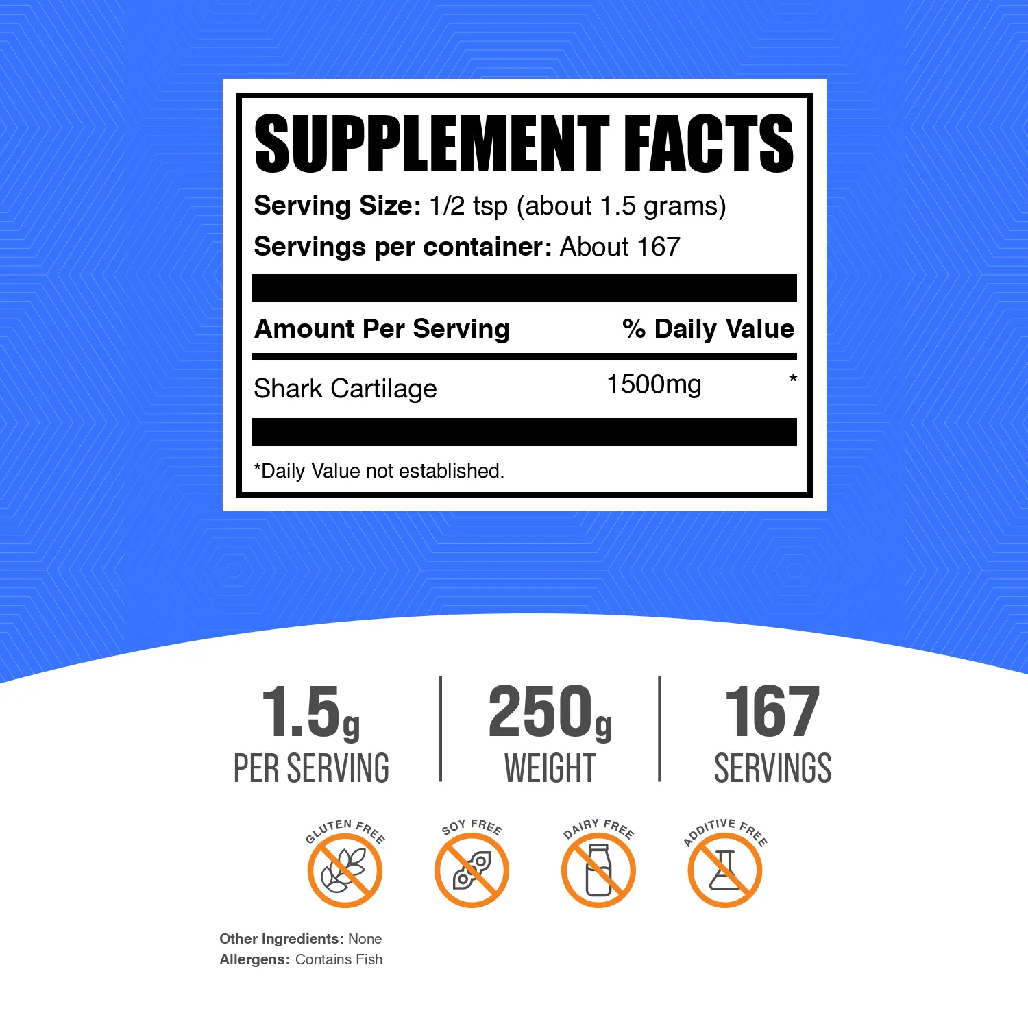 Unlock the secret to robust joint health with BulkSupplements Shark Cartilage powder. This premium supplement is a powerhouse of joint-supporting compounds such as glucosamine and chondroitin. Dive into a sea of benefits – the Shark Cartilage powder is your ally in promoting healthy joints, aiding in overall mobility. It's not just a supplement; it's your daily dose of unstoppable movement. Hurry, the tide of vibrant health awaits!