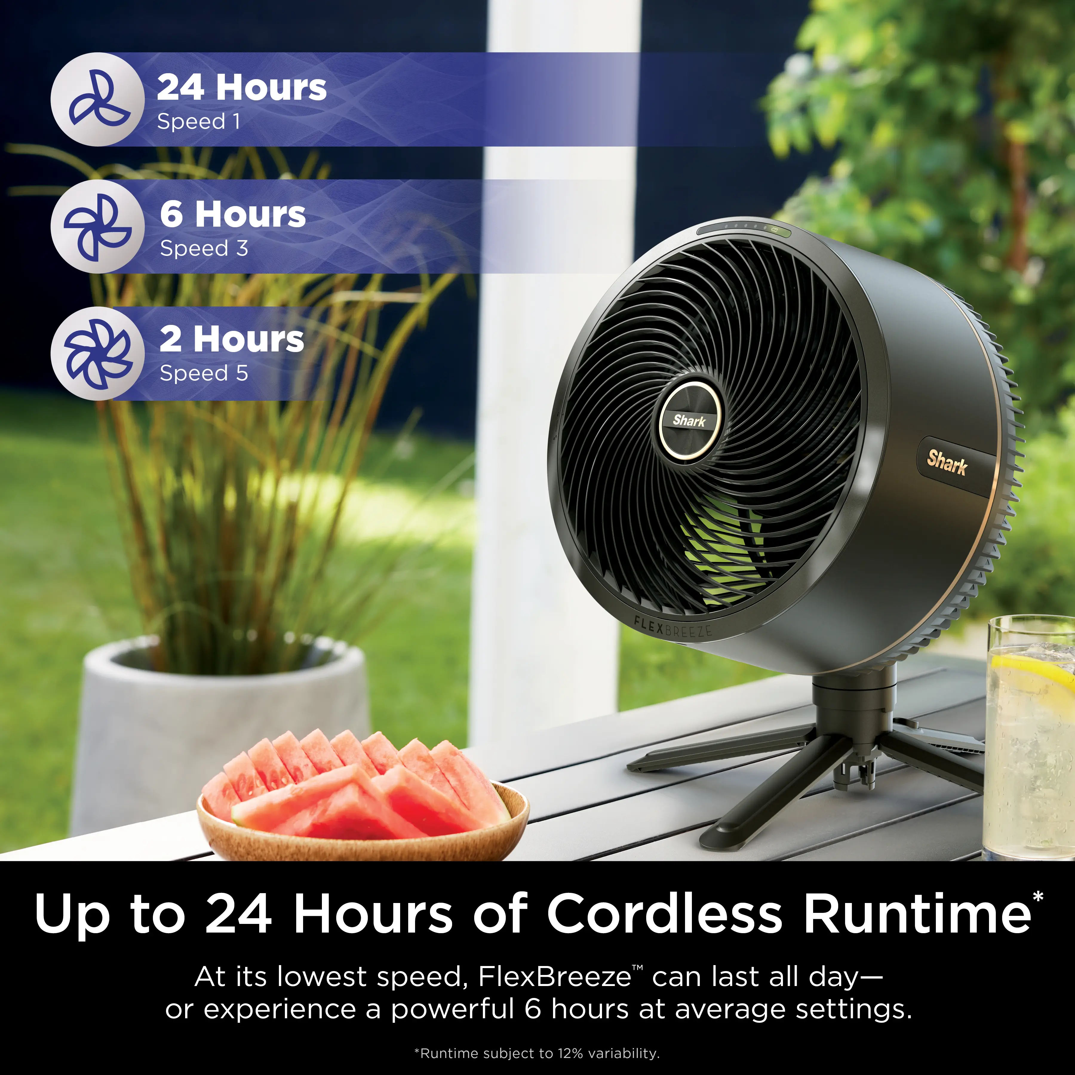 UP TO 24 HOURS OF CORDLESS RUNTIME: At its lowest speed, Flexbreeze can last all day - or experience a powerful 6 hours at average setting. Run out of battery? Just plug it in and keep the power going while recharging.
