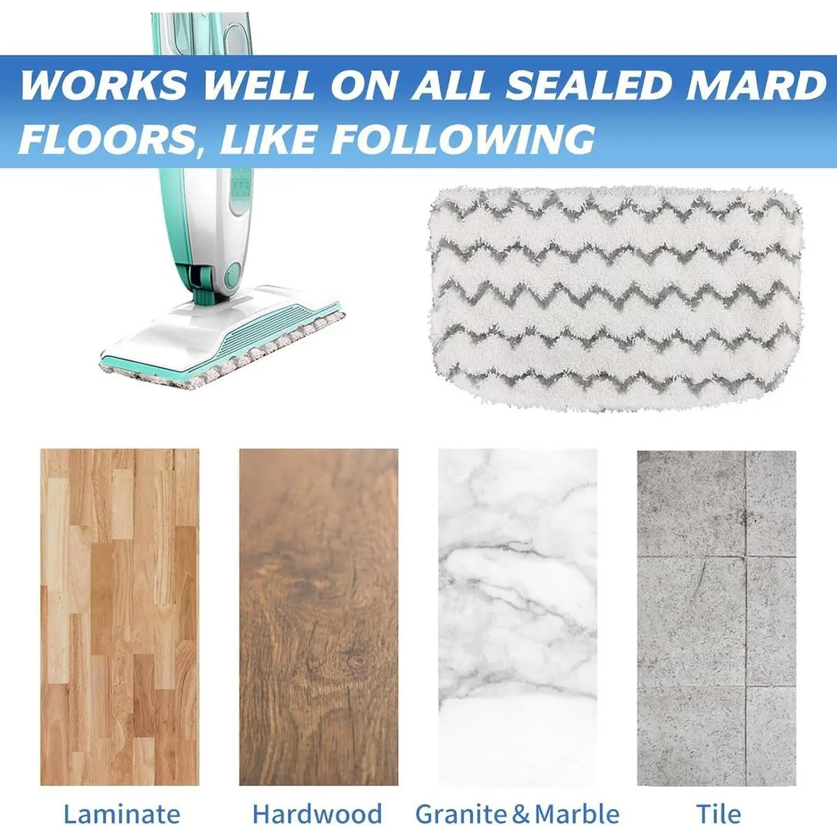 These replacement steam mop pads are suitable for a variety of hard floor surfaces, including hardwood, laminate, tile, marble, linoleum and more.