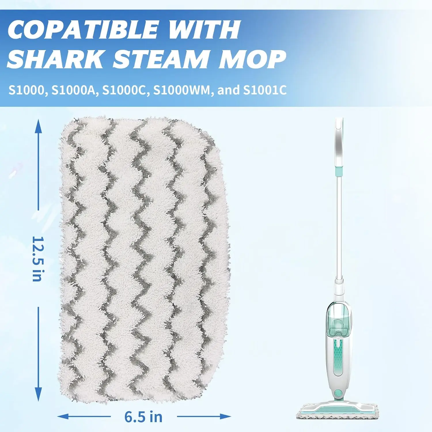 6 Pack Microfiber Steam Mop Pads Replacement for Steam Mop S1000, S1000A, S1000C, S1000WM, and S1001C, Dirt Grip Cleaning Pads