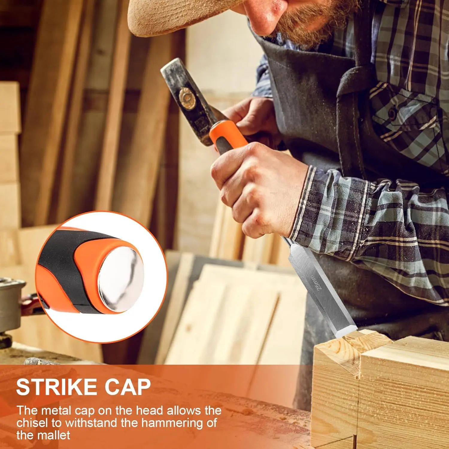 10-piece wood chisel set, 6 high-quality wood chisels equipped with a sharpener, sharpening stone, and carpenter's pencil, suitable for DIY and professional wood carving (6-38 mm)