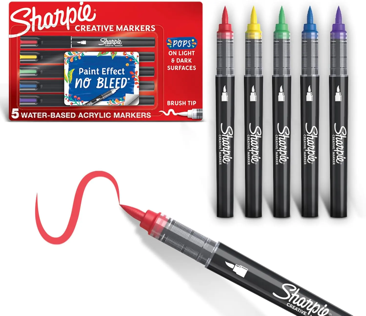 ·Sharpie Creative Markers, Water-Based Acrylic Markers, Brush Tip, Assorted Colors, 5 Count