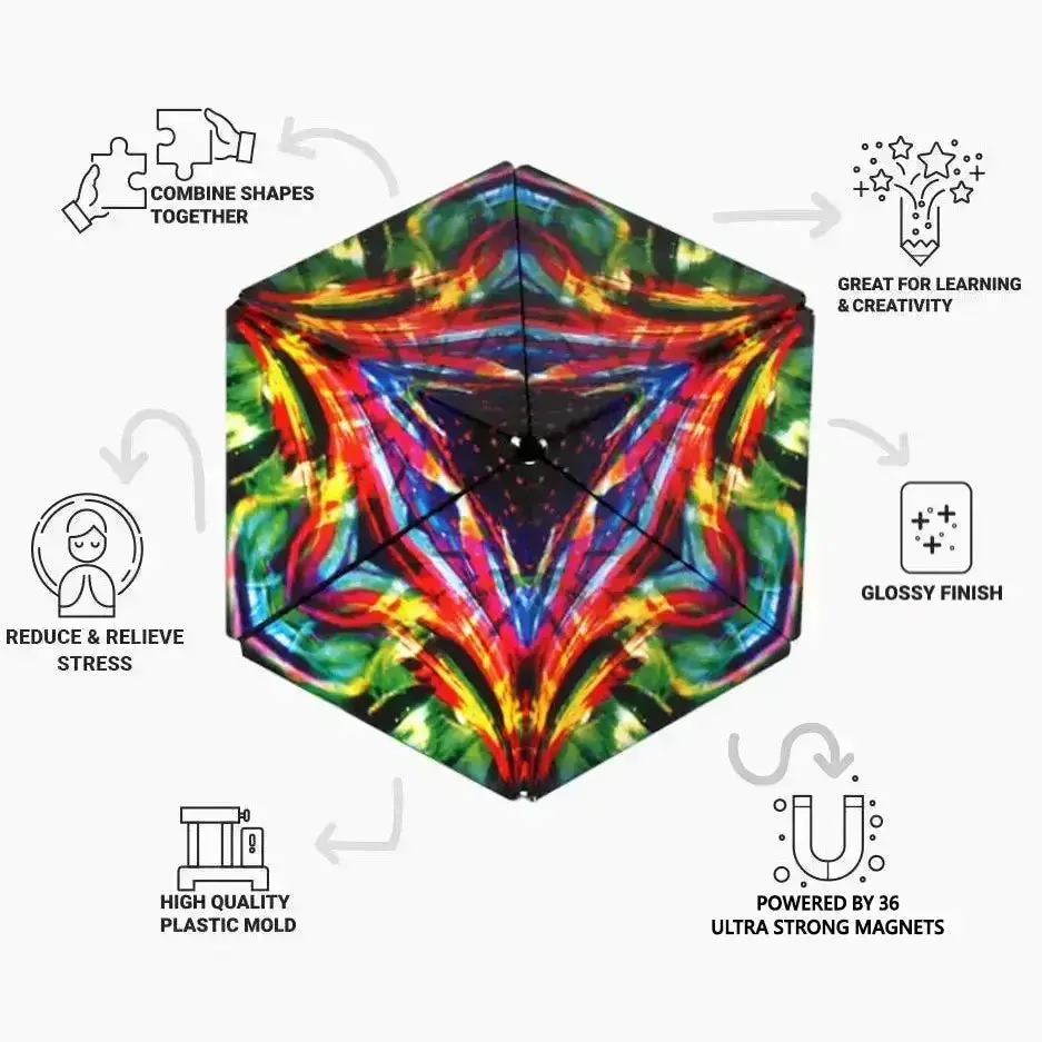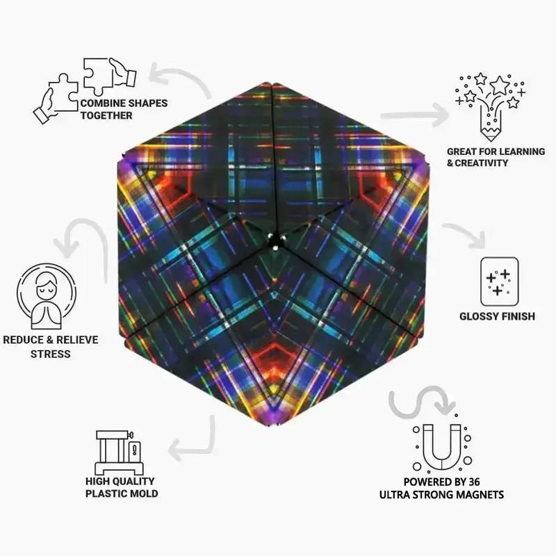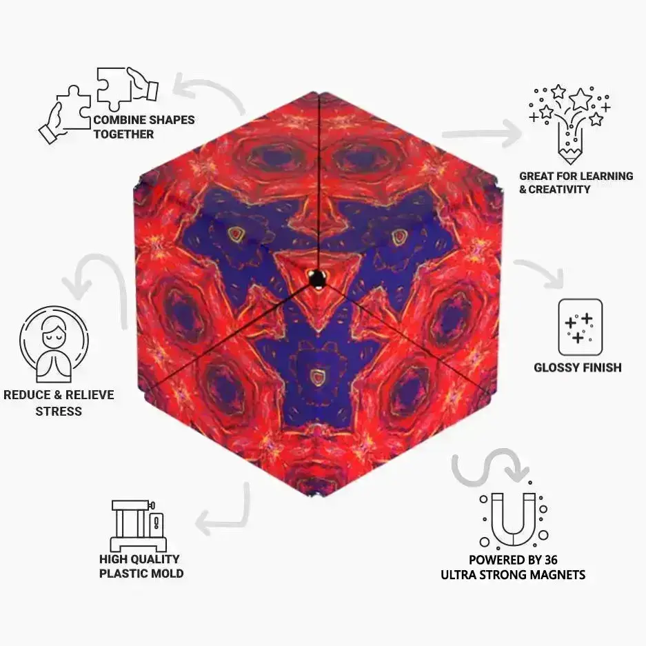 Shashibo cubes are crafted with magnetic technology, allowing them to easily snap into different shapes. The cubes feature vibrant designs and patterns, adding an artistic touch to the interactive experience. The magnetic construction ensures durability and ease of manipulation.