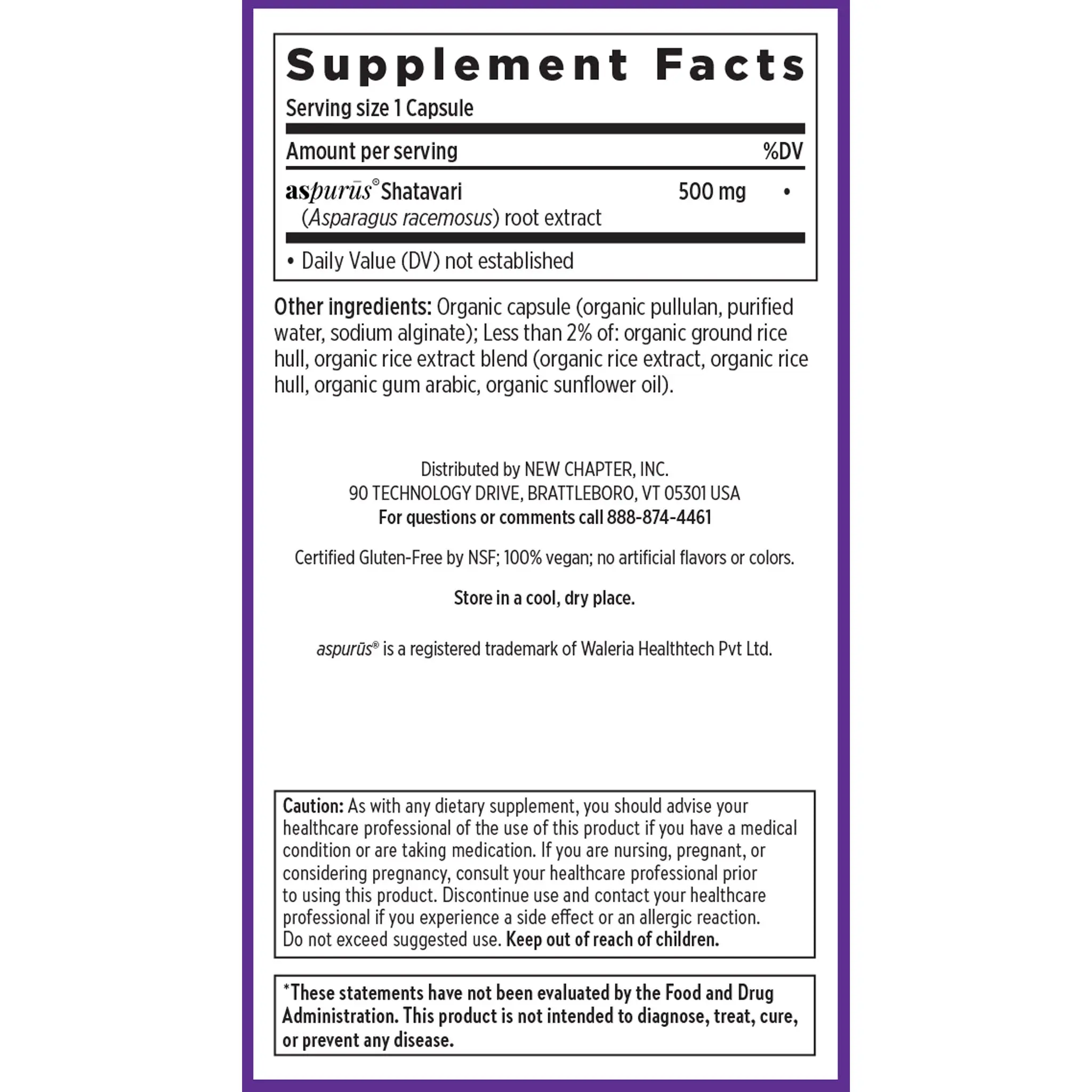 Certified Gluten-Free by NSF; 100% Vegan; no artificial flavors or colors.