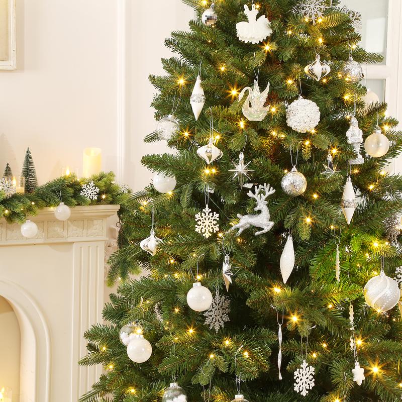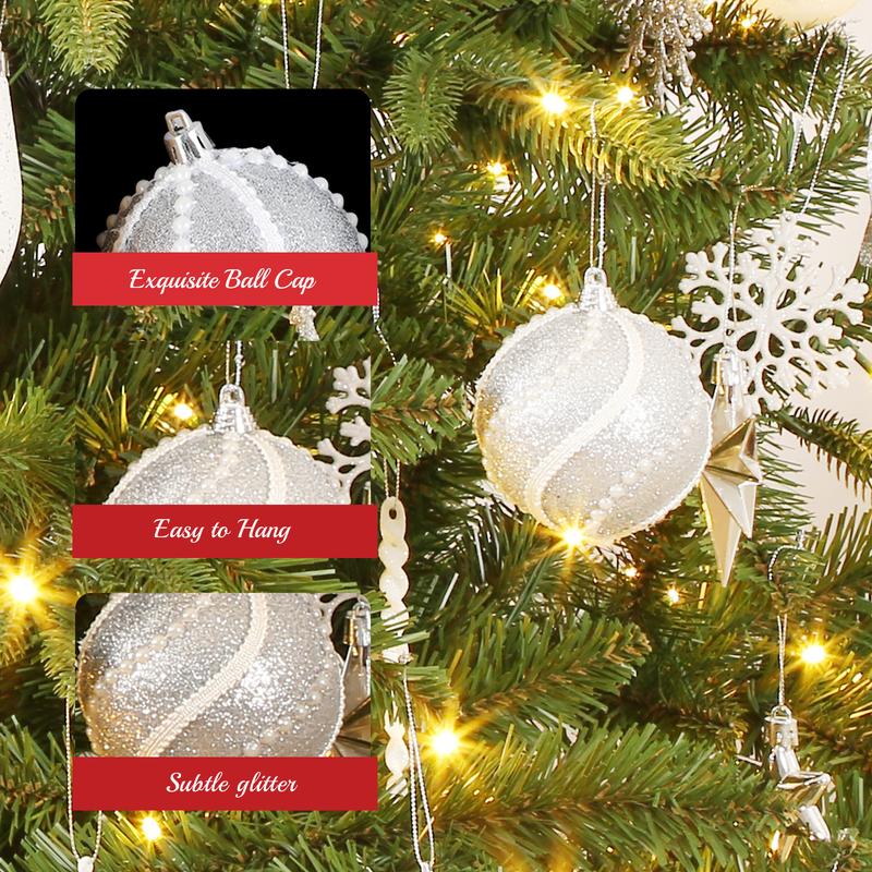 SHareconn 80ct Christmas Tree Balls Ornaments bring festive cheer with colorful shatterproof plastic baubles. Perfect for Xmas tree decoration, these silver & white ornaments add a touch of elegance. Hang them with included hooks for a stunning display. Ideal for holiday, wedding, and party decorations.