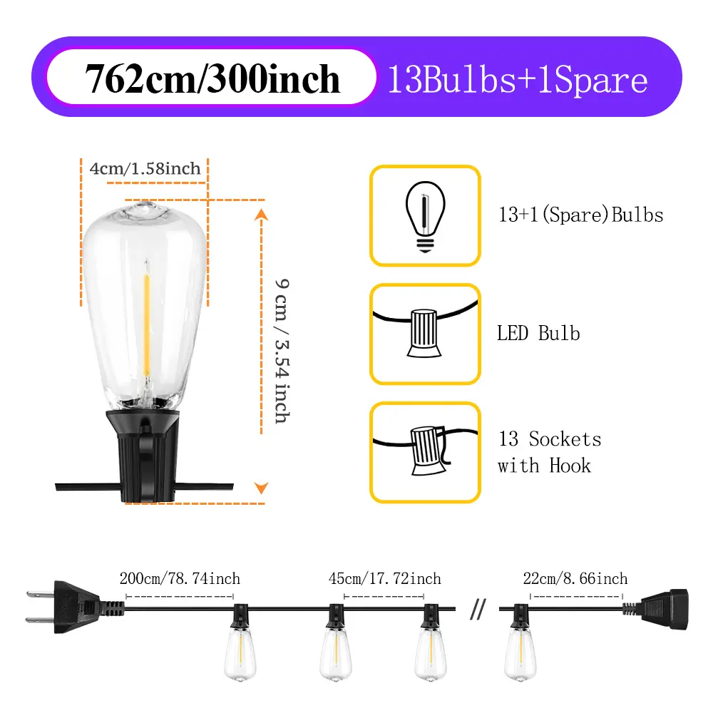 ·Shatterproof ST38 LED Bulbs: High-impact plastic casing ensures safety for kids/pets. Vintage ST38 bulb design emits 2700K warm white light, creating a cozy retro ambiance.