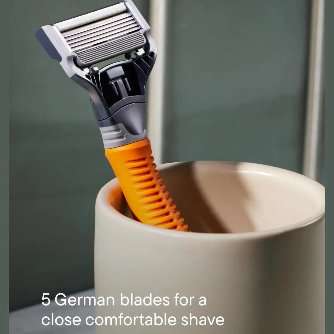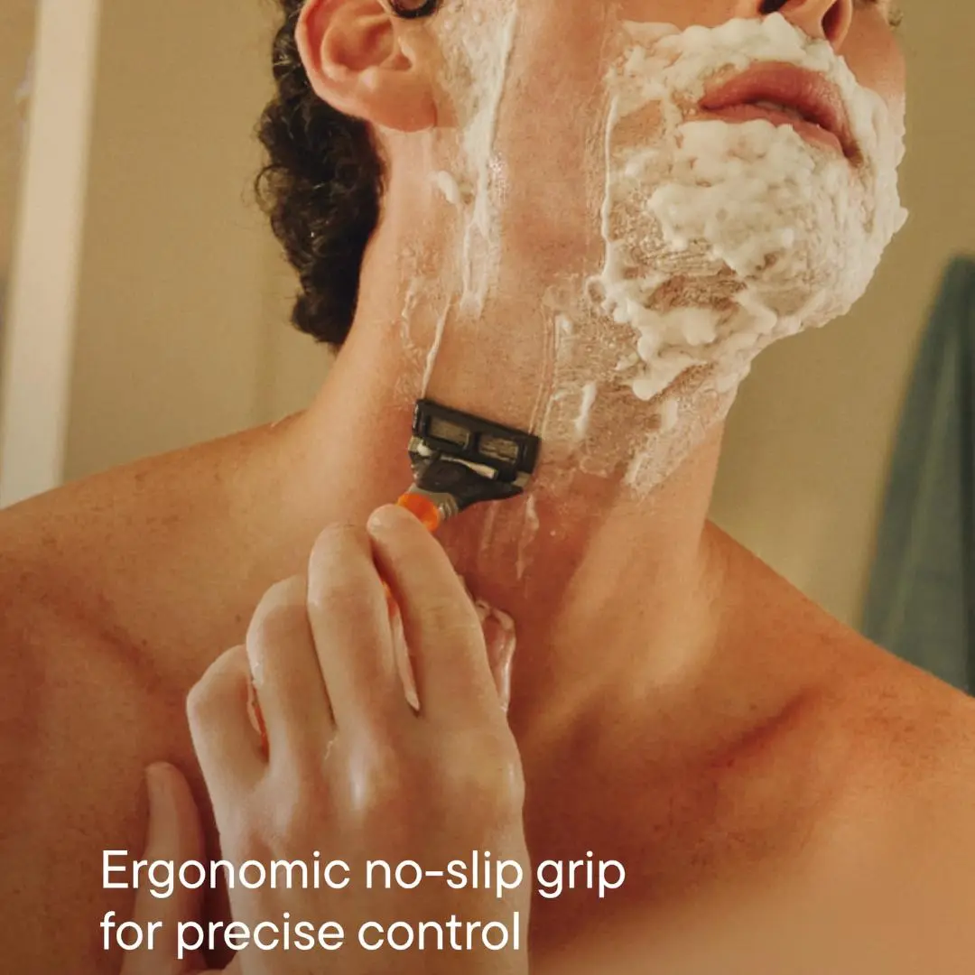 One Harry's Original handle, choose between Two-Tone or Chrome. This set includes three German-engineered blade cartridges, each with a flex hinge and lubricating strip. Perfect for a close shave, these blades are designed for face shaving only. Avoid head shaving.