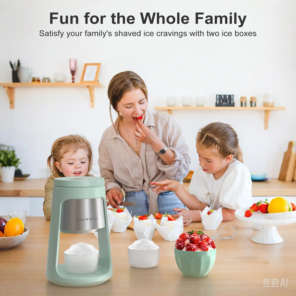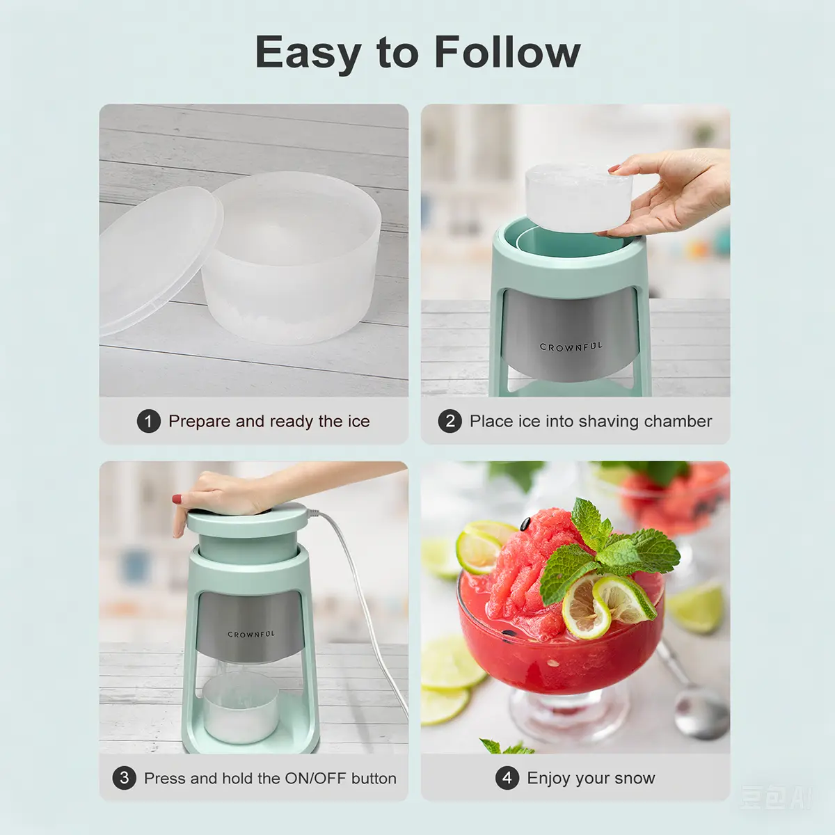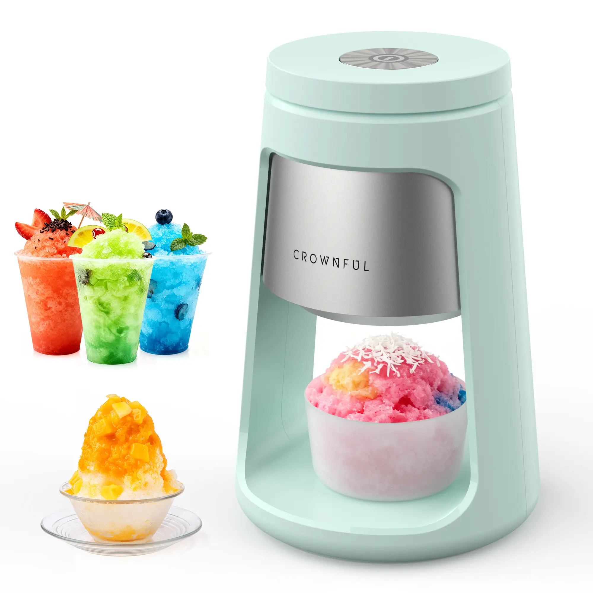 The Crownful Ice Shaver Machine unlocks a world of summer beverages and frozen treats. Its simple "Freeze, Shave, Enjoy" process makes creating homemade DIY desserts effortless and fun for the whole family.