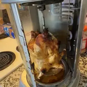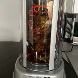 ·360° Automatic Rotation: The shawarma grill machine features a 360° automatic rotation function and a curved glass door to ensure even heating. The rotating design helps keep the meat juicy, delivering delicious results.