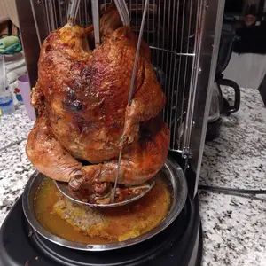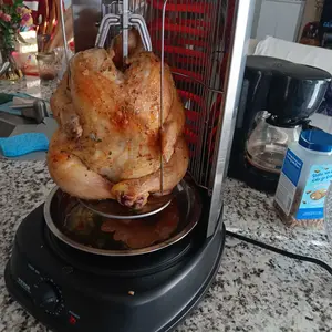 This vertical rotisserie is perfect for family restaurants, kitchens, and backyard gatherings, making it a versatile addition to any culinary setup.