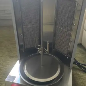 This shawarma machine features a stainless steel heating tube that allows for fast and even cooking with a 360° rotating function, ensuring delicious and flavorful grilled meats.
