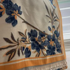 I ordered the navy blue floral print with the golden accent colors, and it is so beautiful and soft! The material is thick and drapes softly with plenty of volume. I cannot wait to style this scarf with an outfit!