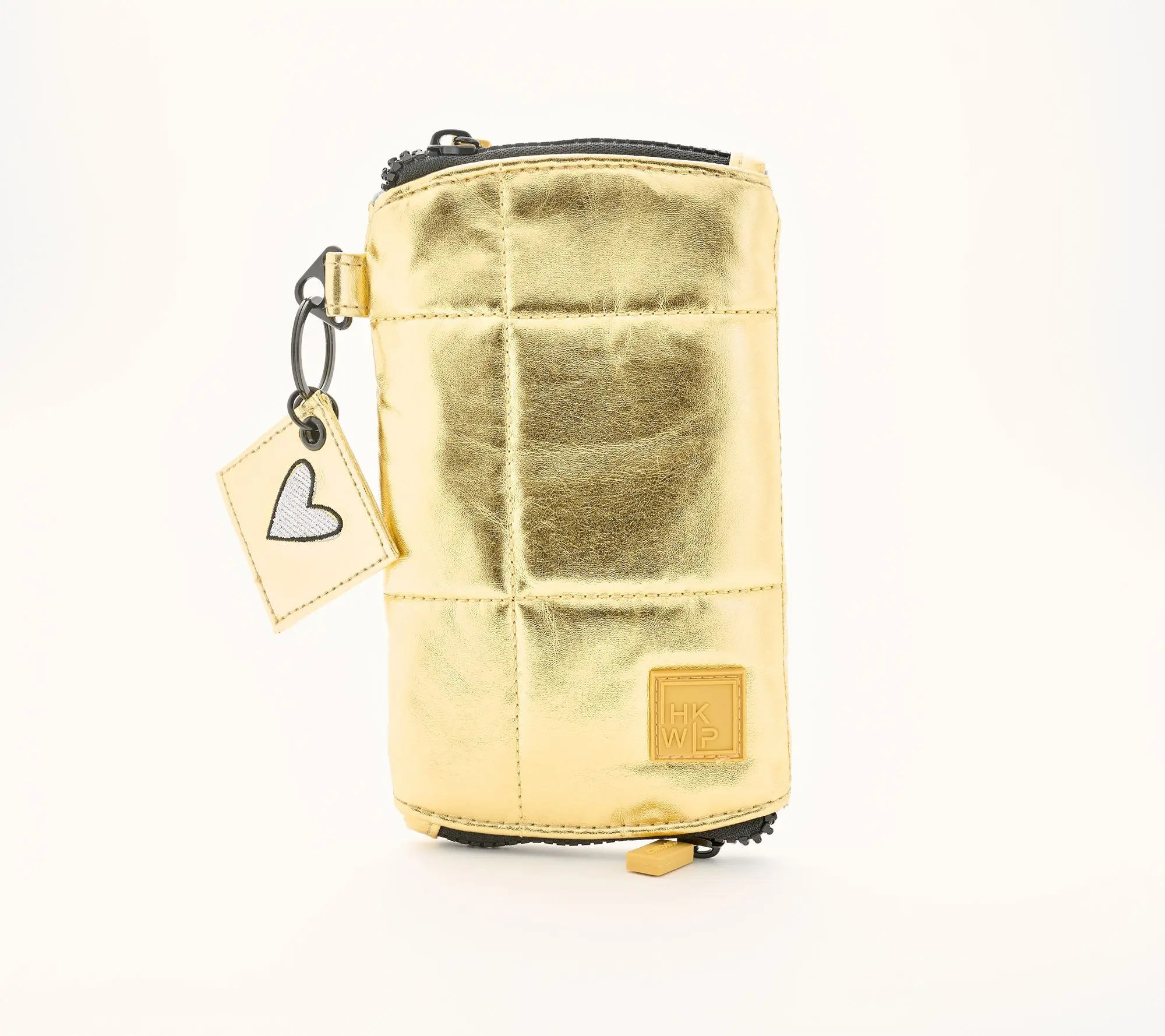 Heading to brunch, the park, or your next meeting? This roomy, puffy quilted case safeguards both your sunglasses and readers with soft, padded lining and dual zip-open compartments -- so you'll never have to choose just one pair for the day. The cheerful heart keychain clips on for extra flair, making it as fun as it is practical. From IHKWIP.