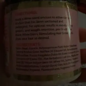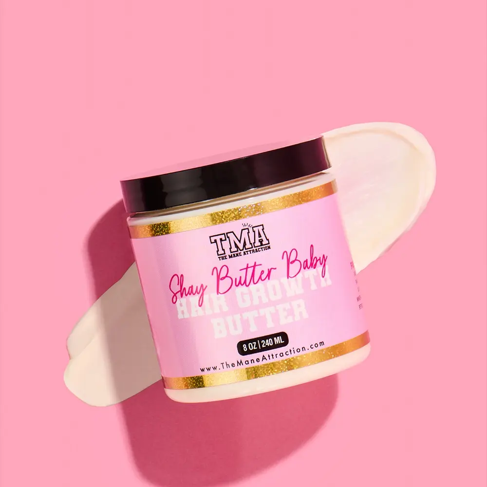 Lightly spray hair with warm water. Apply a dime-sized amount of the hair butter into your palms and massage in. Style as desired. A little goes a long way! Pair with The Mane Attraction's Stimulating Hair Growth Oil for optimal moisture and growth.