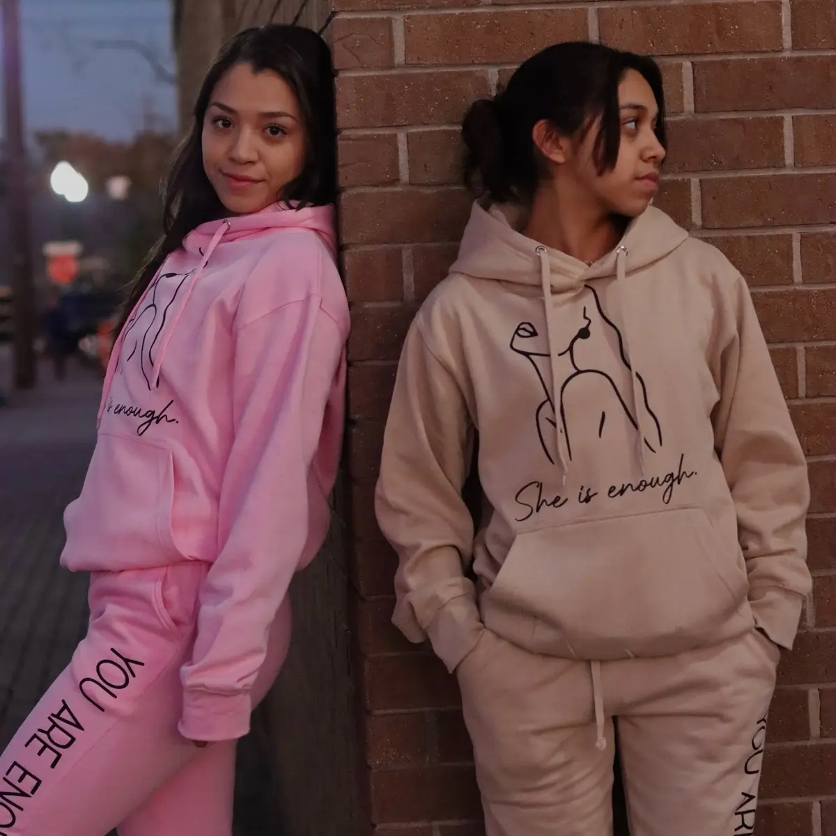 By choosing this sweatsuit, you're not only investing in a fashionable and comfortable outfit but also supporting a brand that champions diversity and inclusivity in the beauty and fashion industry. Celebrate your unique journey and make a statement with the She Is Enough Sweatsuit Set—because you are, indeed, enough.