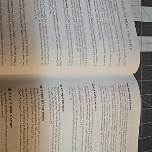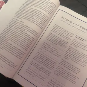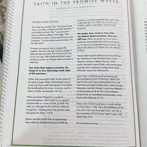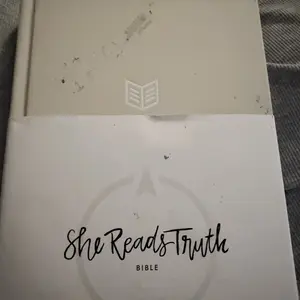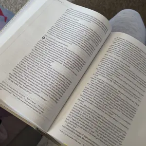 This Bible is so amazing, the words are large enough which I really appreciate, the pages are a bit thin but it’s not too bad, and my favorite part is each page has a spacious note taking area for you to take notes on each paragraph!!! The book is hard cover which I love and it’s pretty nude color😍
