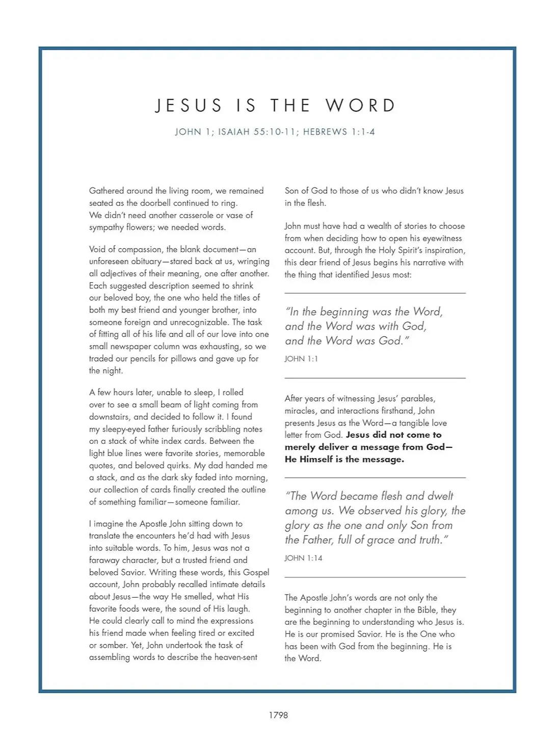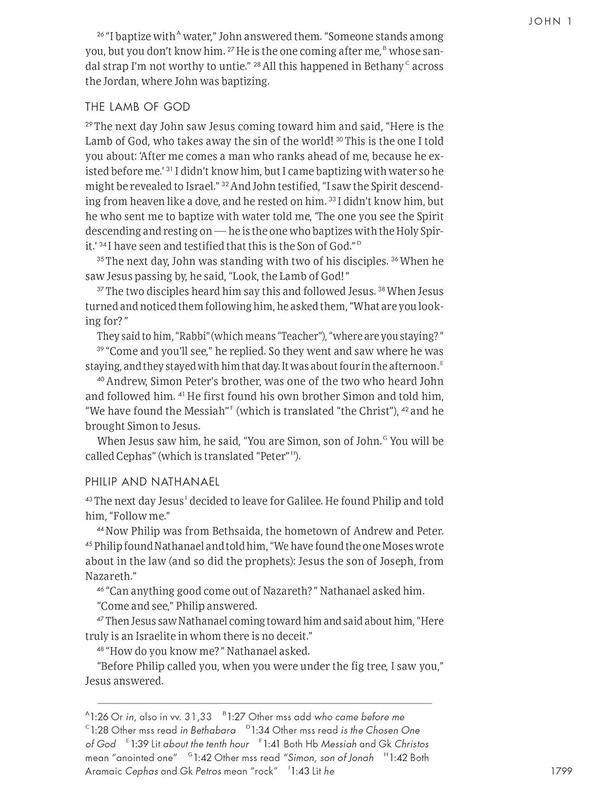 This is a wonderful book and so far all the books are just like picking up an actual Bible. However I’m very disappointed that there is no scripture for the book of John, it’s gives a greeting and a small description. I have to use my actual Bible to look up and read about John