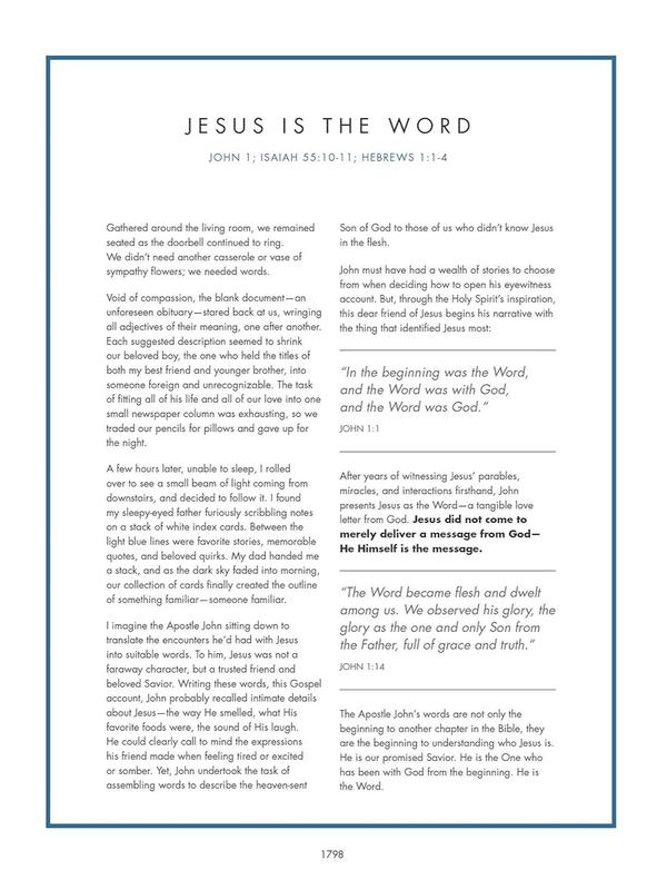 This Bible is perfect! I love how it breaks down the Bible to a reading plan as well as all the information added to help understand. I haven't been able to put it down, plus there is great space to annotate!