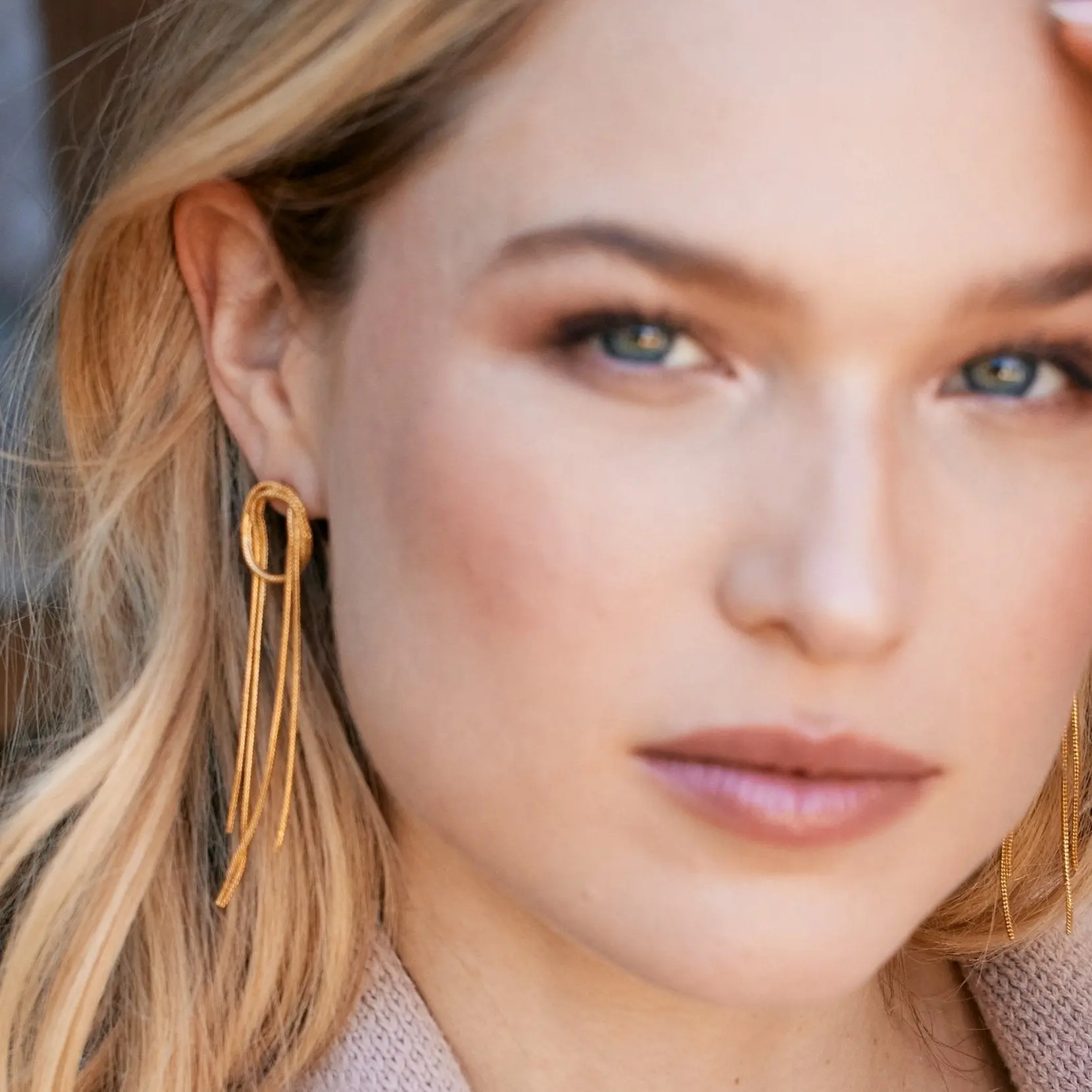 Add a delightful and playful twist to your outfit with our stunning Shea Earrings! These unique earrings feature an open knot design that creates a sense of movement, effortlessly catching the eye and drawing attention to your style. The elegant linear drop design adds a touch of sophistication, making them the perfect accessory for both casual outings and special occasions. With a secure post closure, these earrings ensure comfortable wear throughout the day, making them a must-have addition to your jewelry collection.