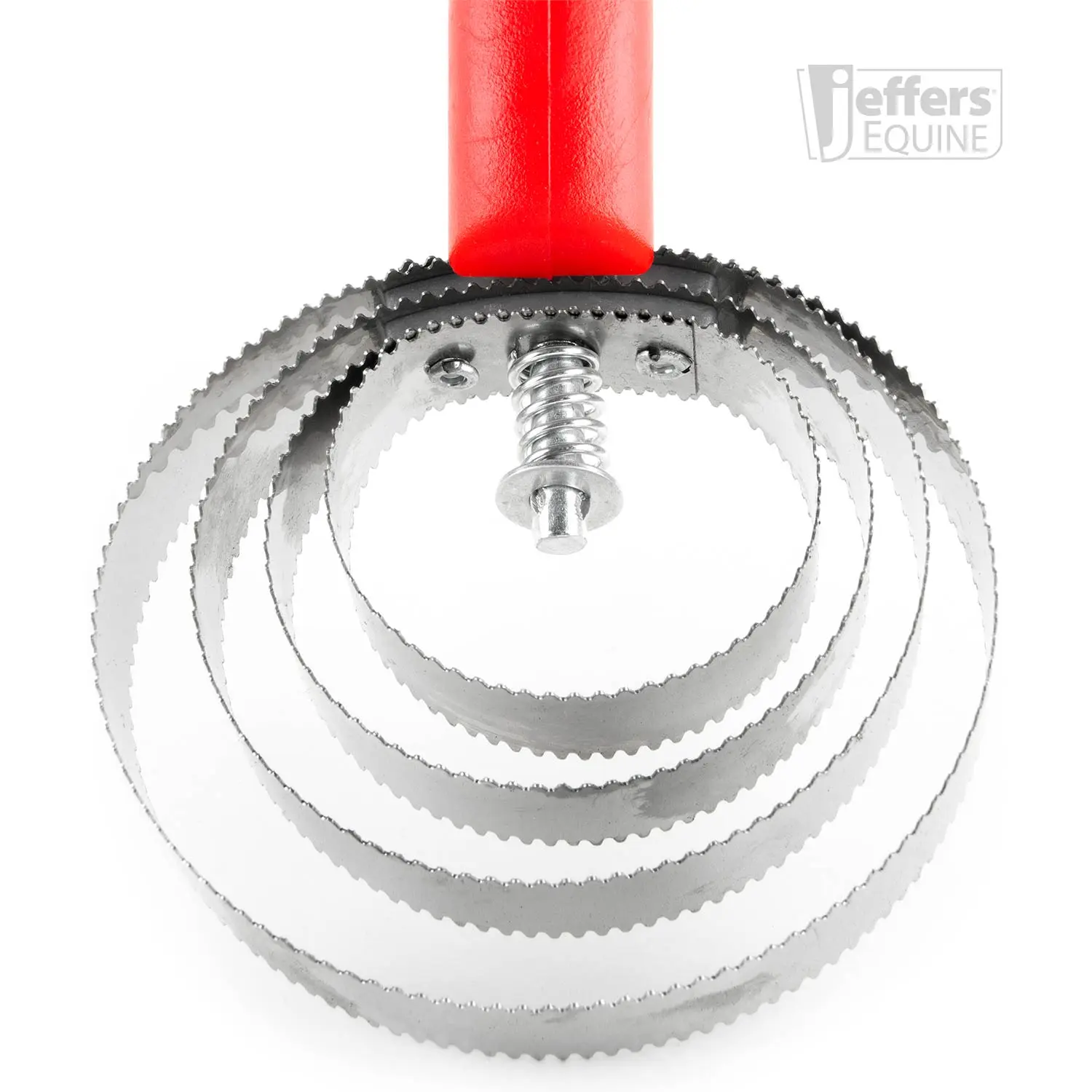 This comb is perfect for deep cleaning and massaging the horse's coat, helping to remove loose hair, dirt, debris, and sweat. The sturdy, comfortable plastic handle ensures a secure grip, even during longer grooming sessions. Whether youre shedding the winter coat or removing sweat after a ride, this tool is a must-have for maintaining a healthy, shiny coat.