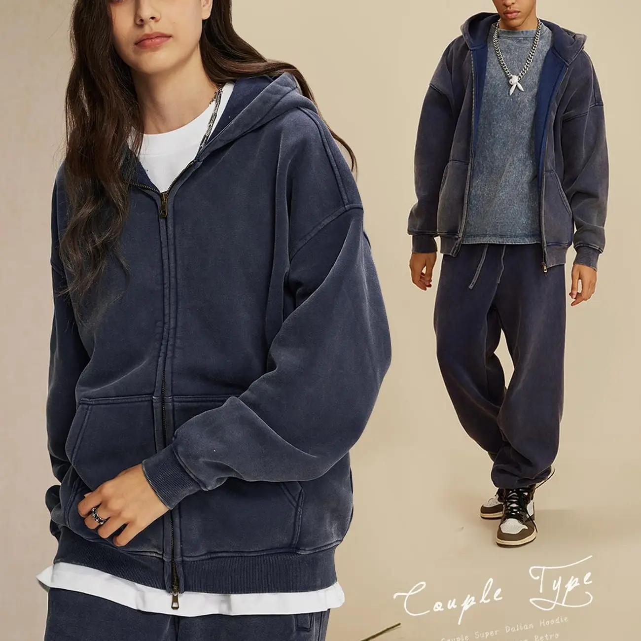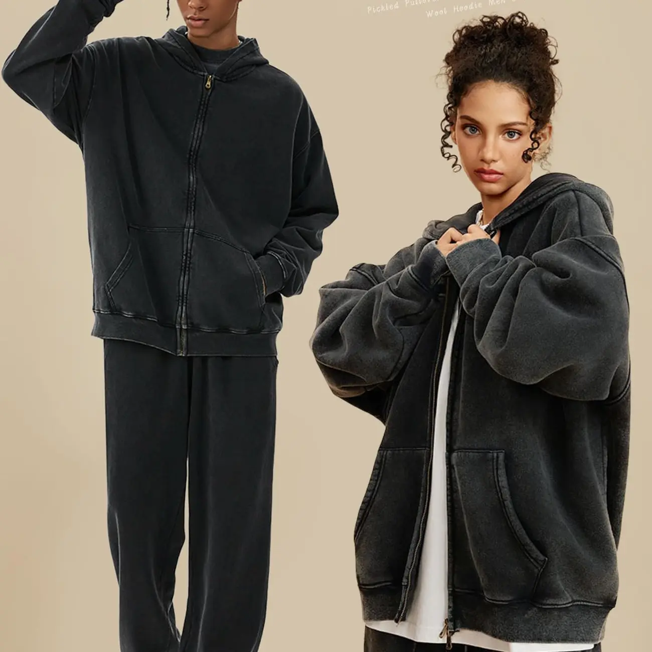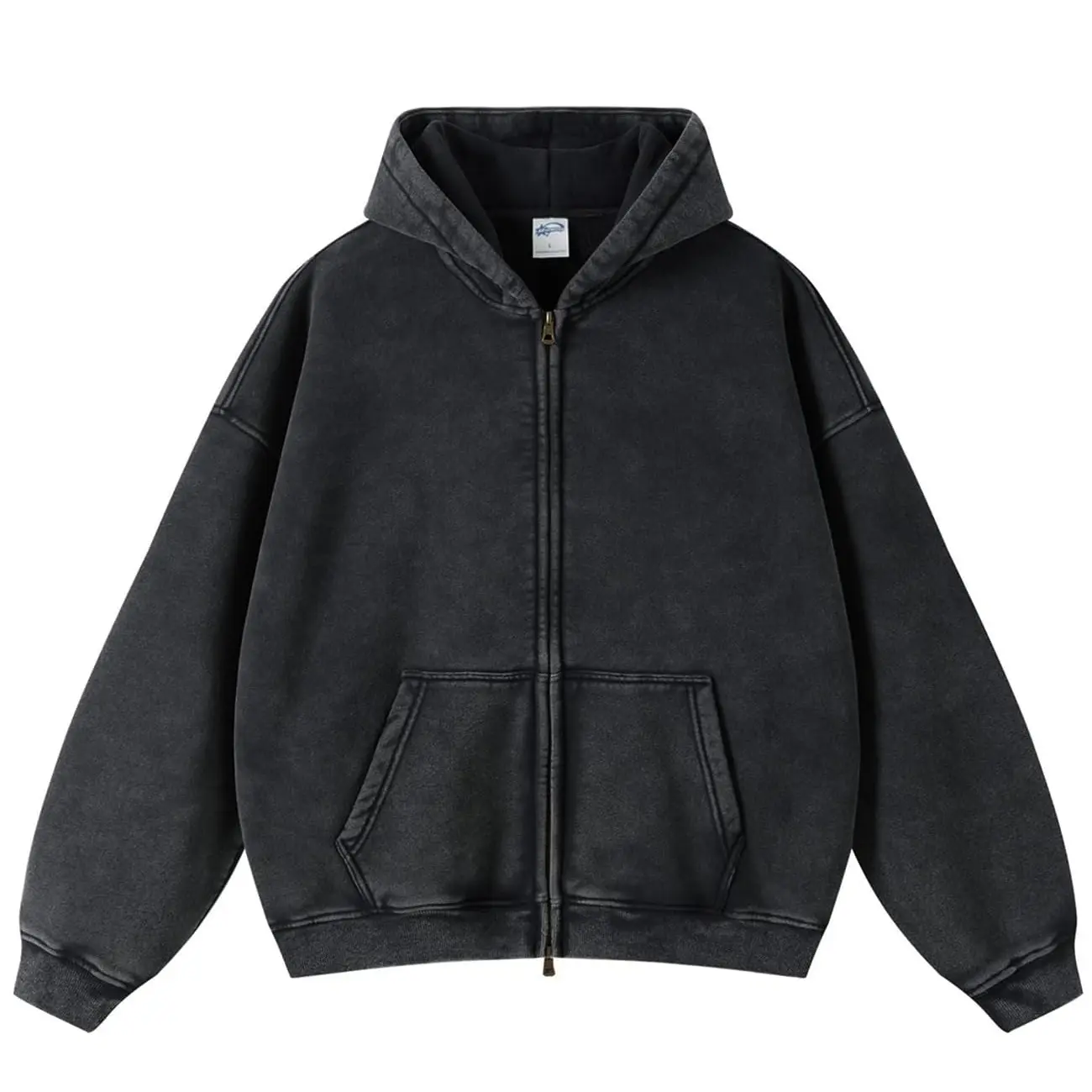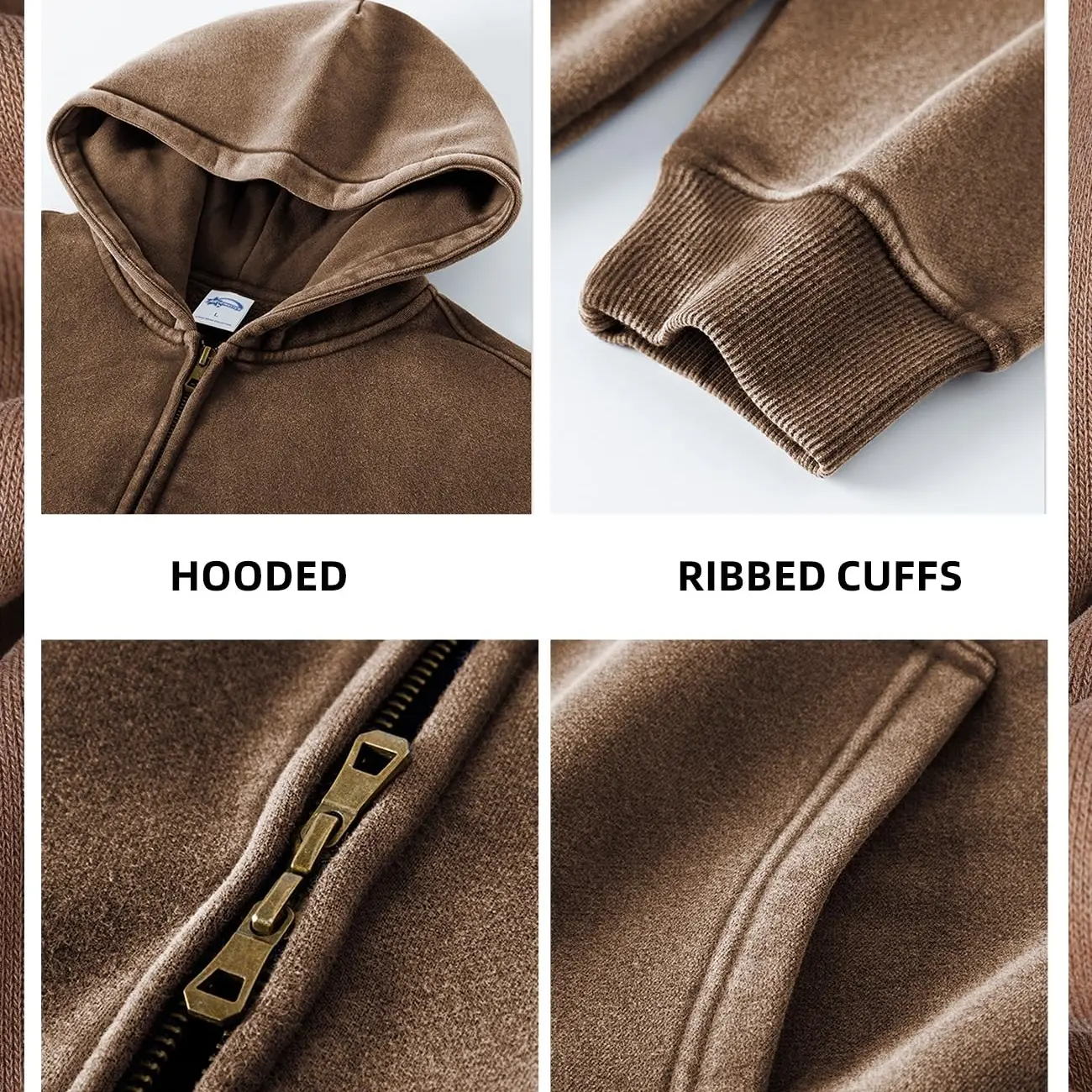 ·Zip-up hoodie with a vintage acid wash finish. 🌟