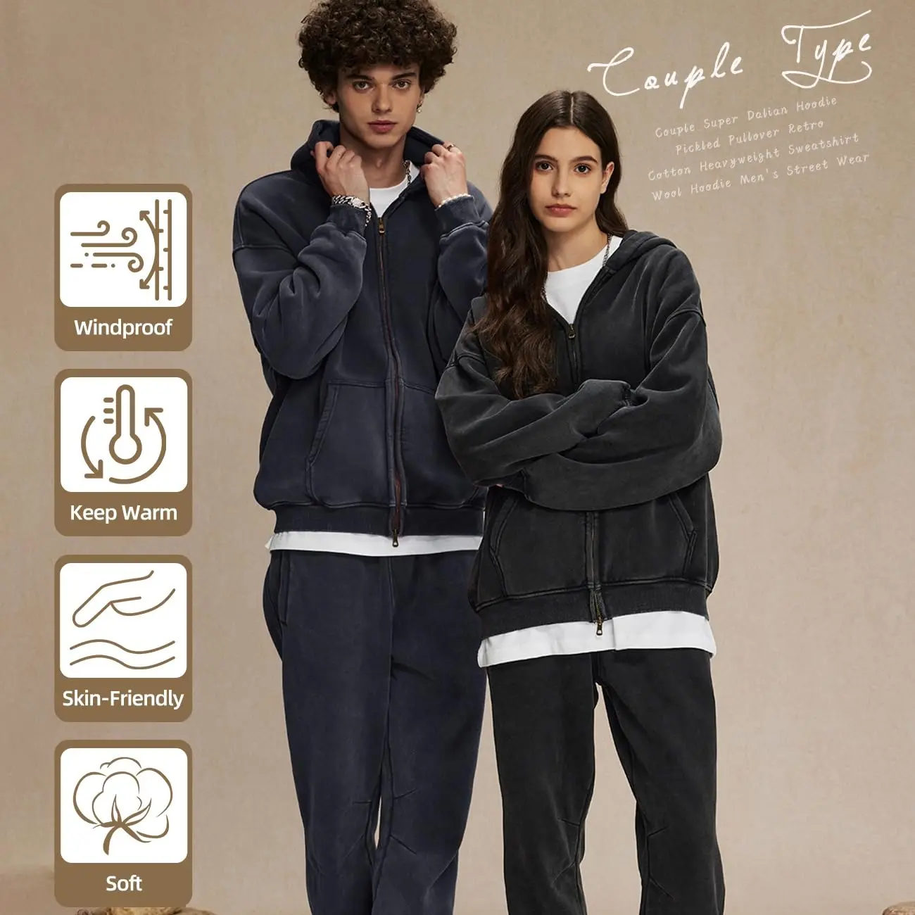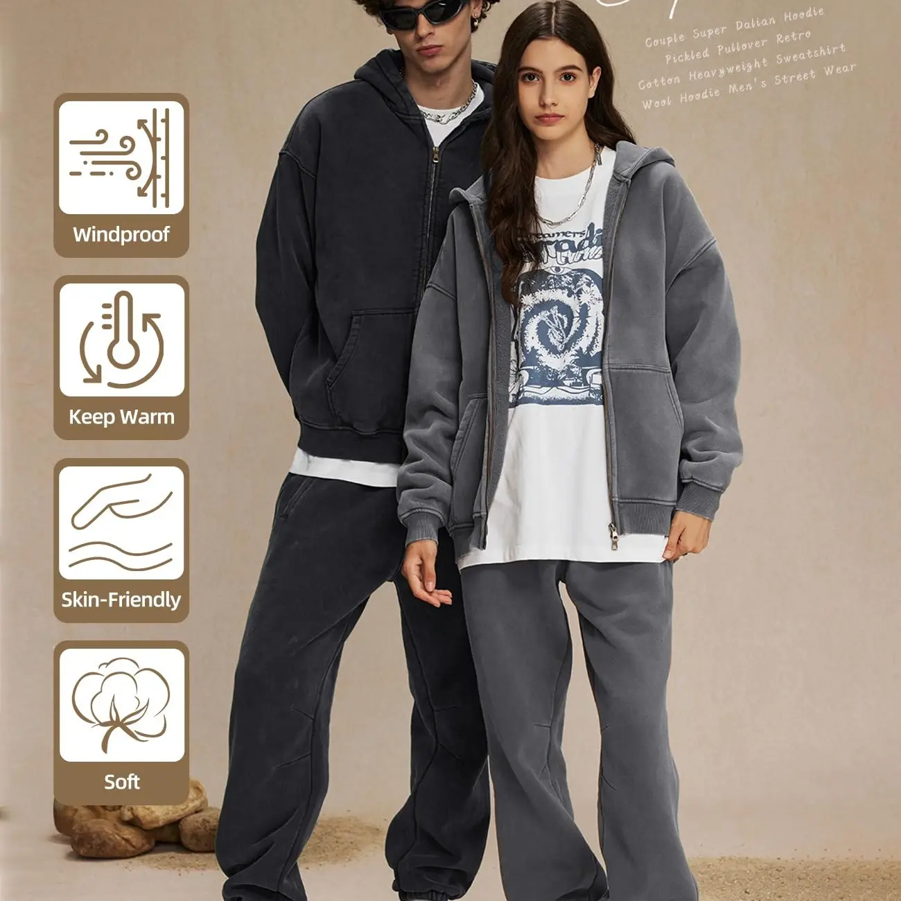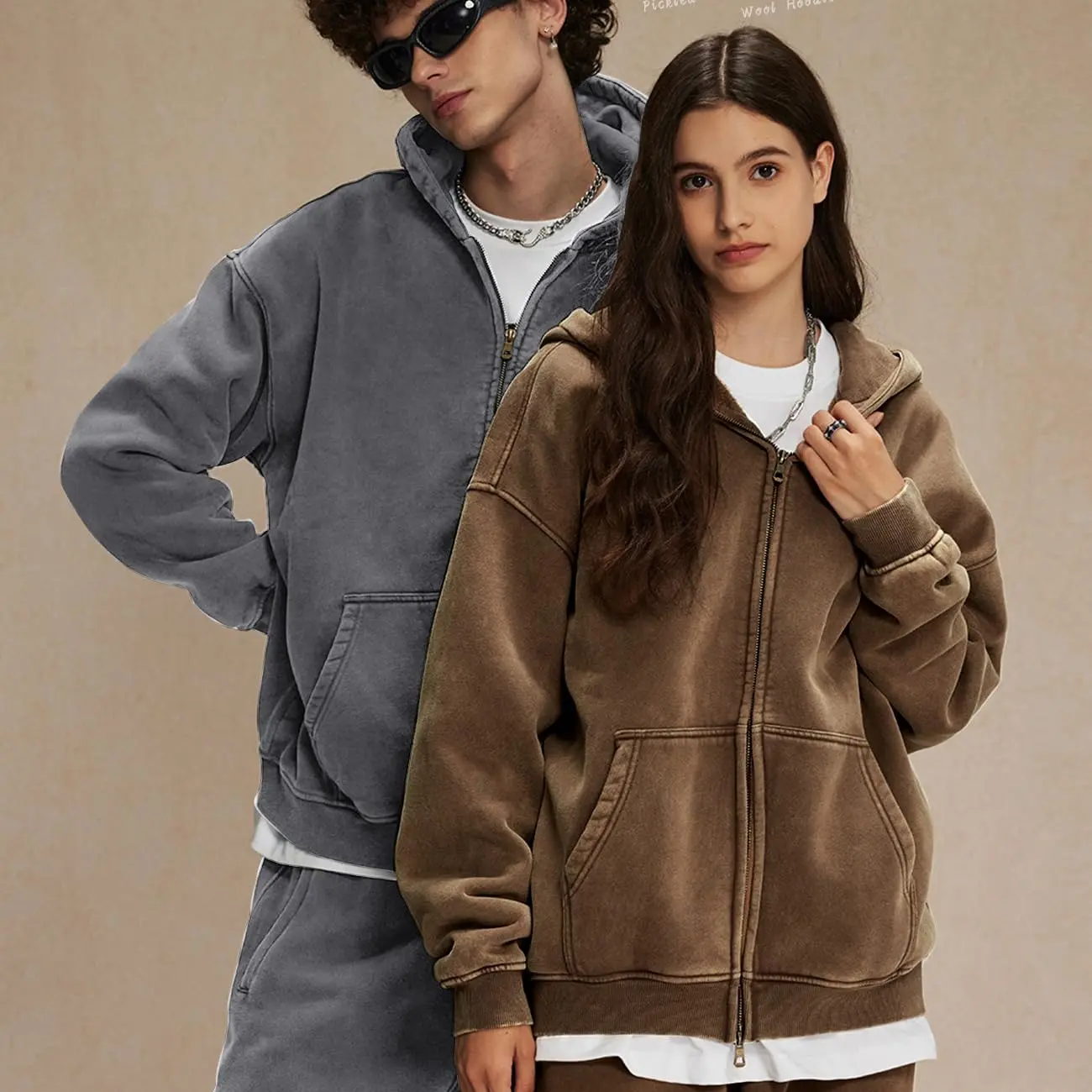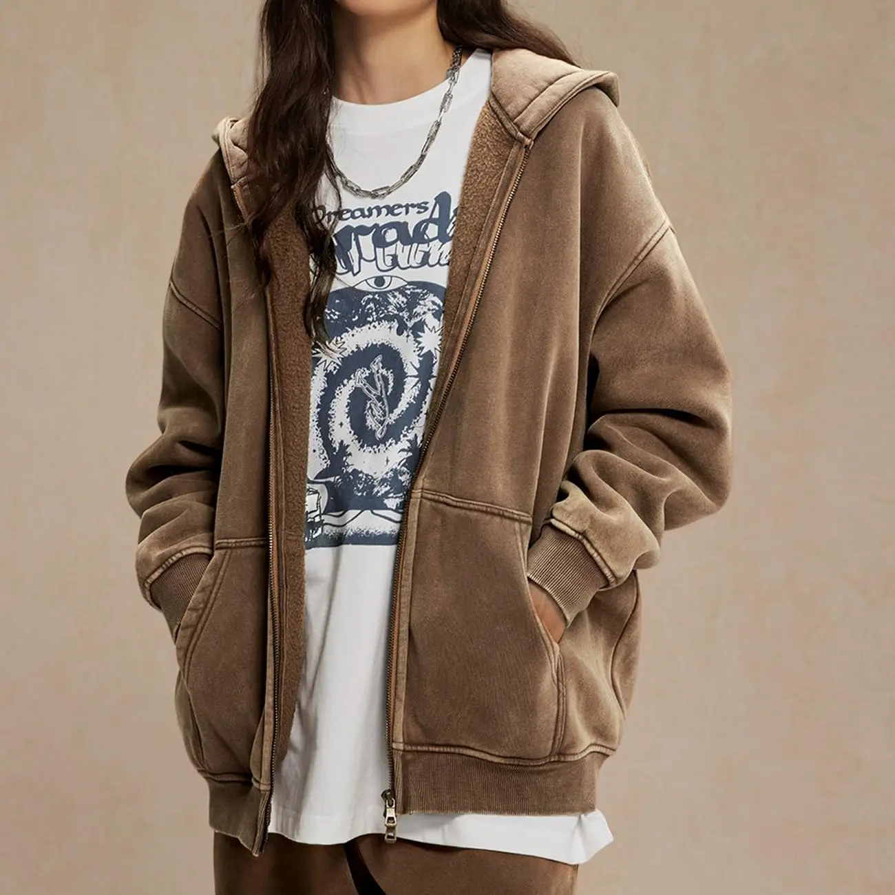 ·Zip-up hoodie with a vintage acid wash finish. 🌟