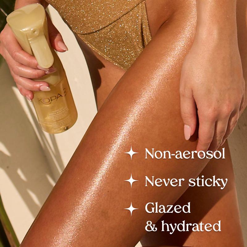 Best body sunscreen!!! I absolutely love this product and many other from kopari. I love how it smells and how it makes my skin look well still taking protected from the sun. I love the shimmer in it as well I have repurchased this product 4 times and I stay stocked up. Even my husband wears it to the pool or beach days, he likes it vary much!