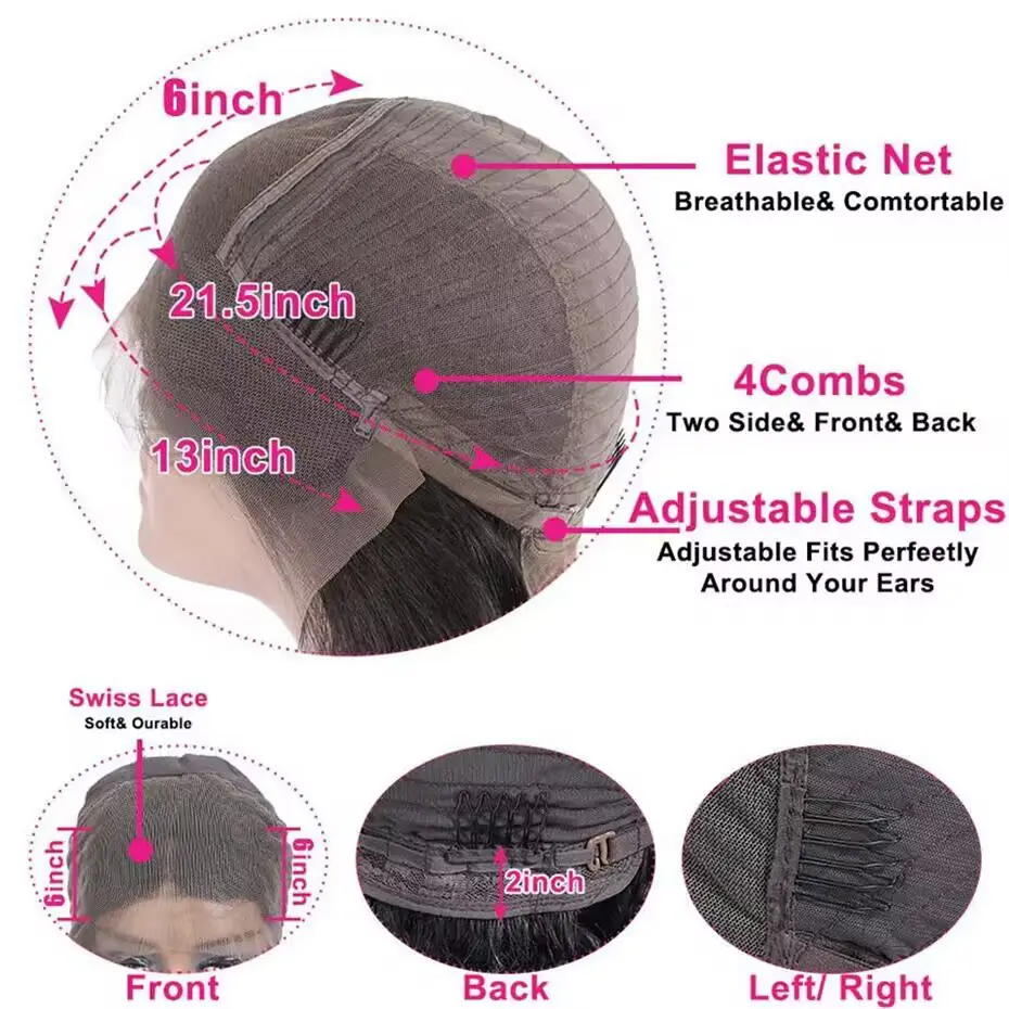 ·Cap Size: Medium (22.5 inches) with 4 combs and an adjustable strap