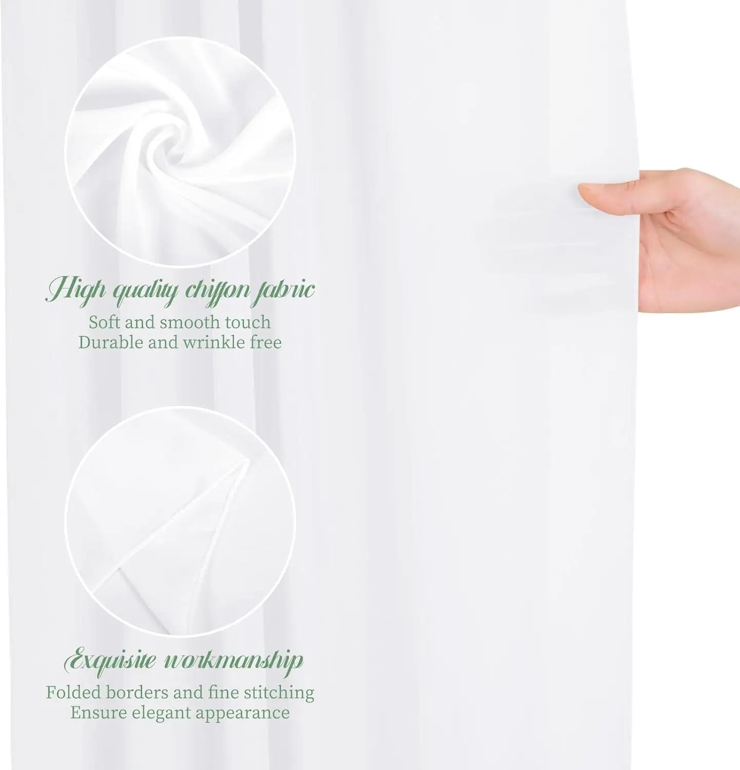 This Sage Green chiffon drapery backdrop is made of high-quality chiffon material, with a soft and smooth touch without wrinkles. The high-quality workmanship makes all edges sewn beautifully and has good durability. Soft sheer drapes will help to create beautiful folds or leave it flowing loose onto the floor, Create a romantic scene easily.