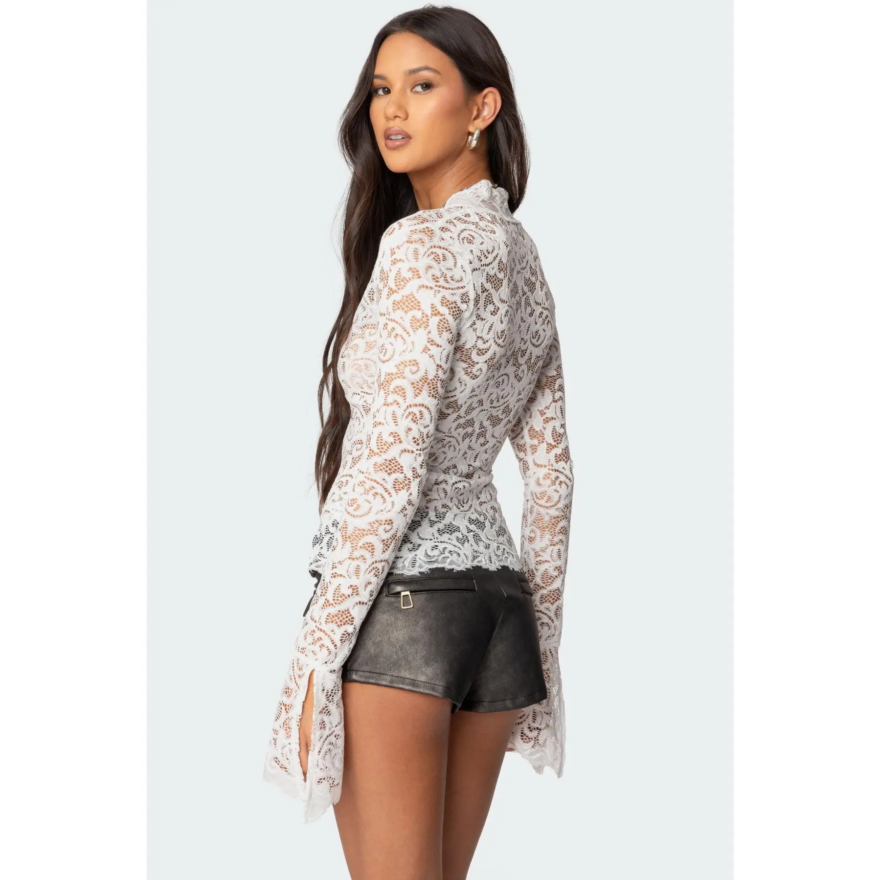 5. Sheer Lace Bell Sleeve Top