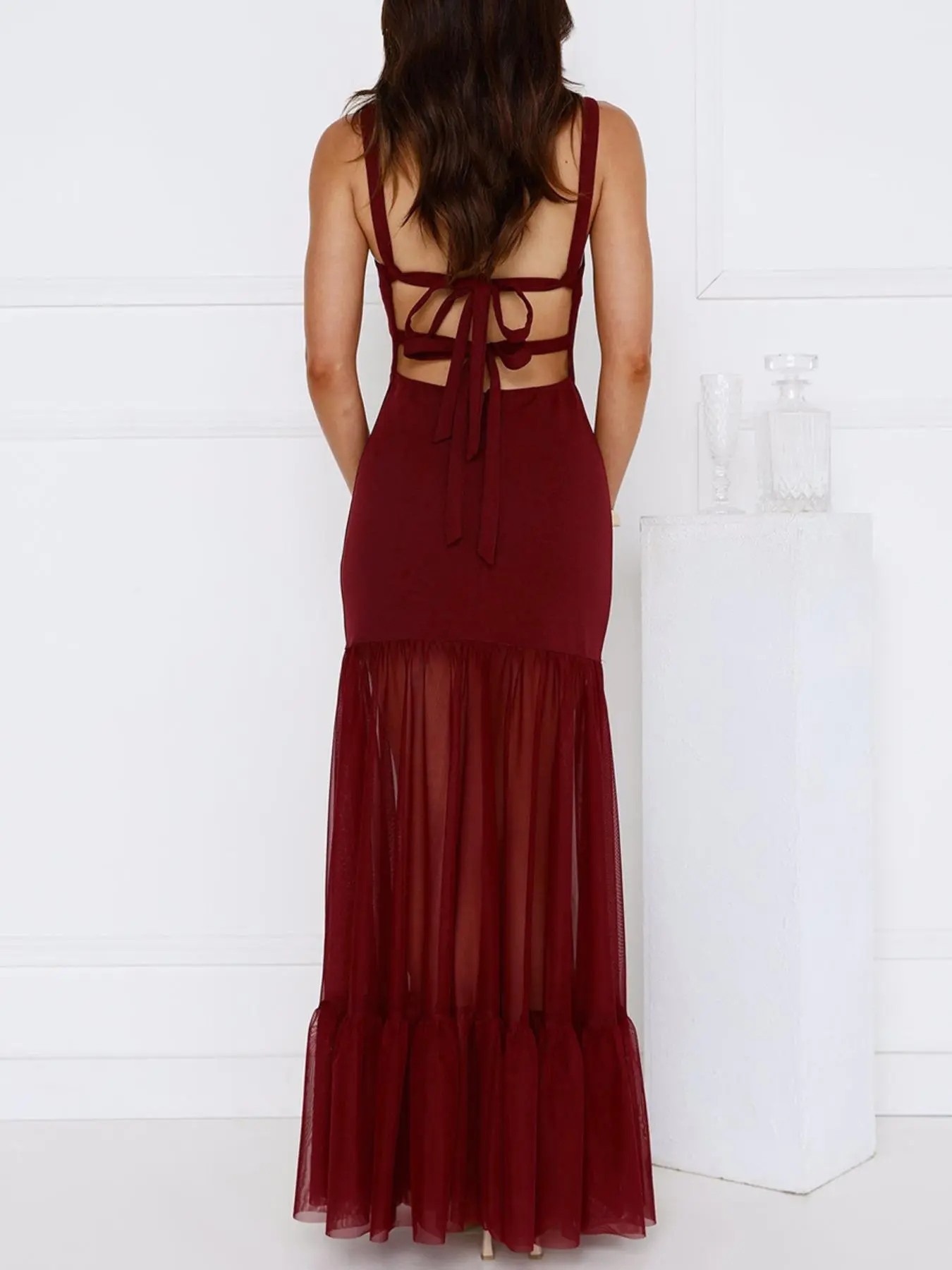 A mesh bottom and open back dress!! #affordablefashionfinds #openbackdresses #dinnerdress #goingoutdress #elegantdress