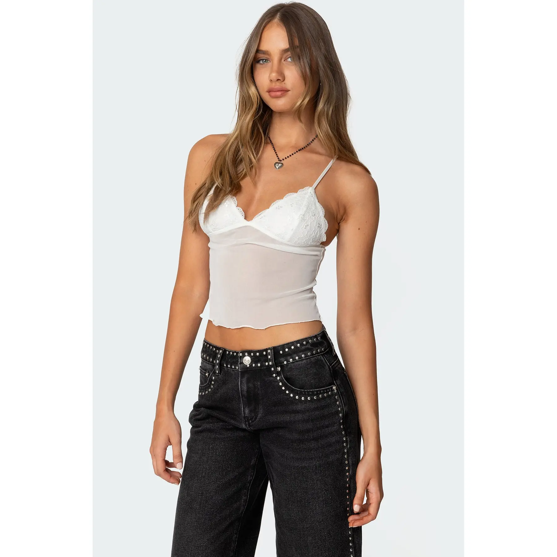 5. Malika Lacey Sheer Mesh Tank Top