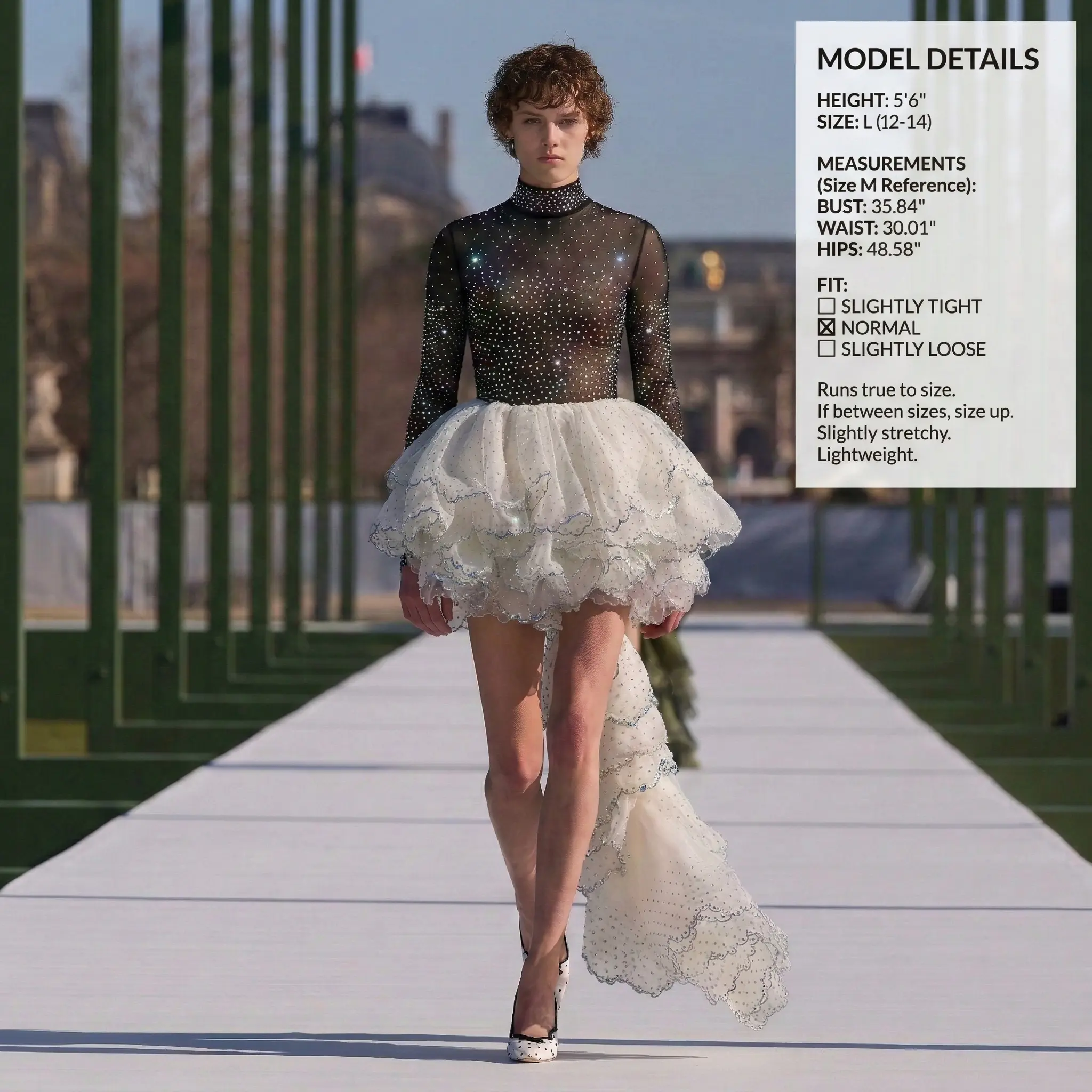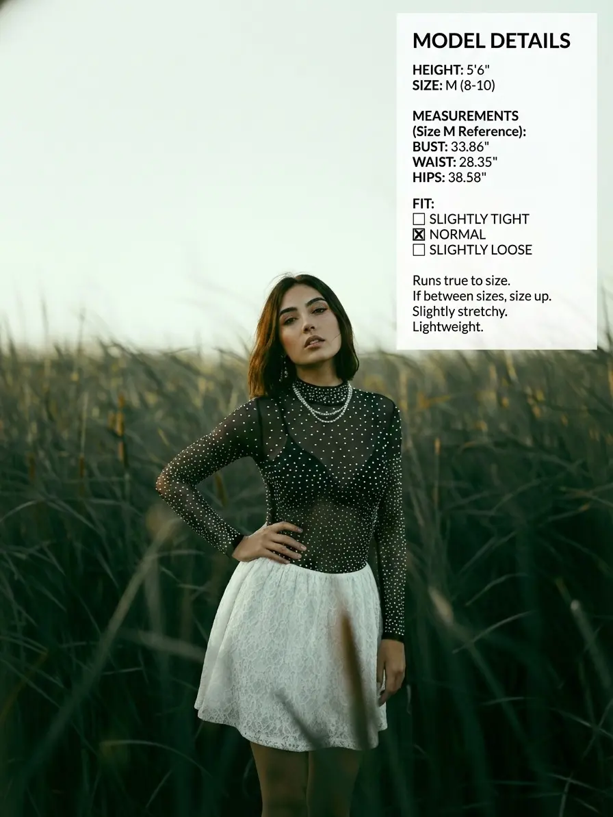 ·Sheer mesh silver rhinestones studded bodice,The rhinestone detailing adds a touch of glamour,while this slim-fit sparkle top is perfect to show off your body curves.(Bra is not included)