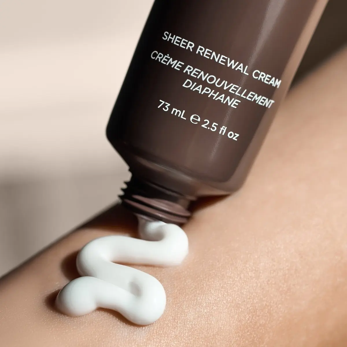 What It Is: Sheer Renewal Cream is a lightweight, oil-free moisturizer that preps, hydrates and supports the skin’s delicate barrier while promoting healthy cell turnover for smoother, healthier-looking skin.