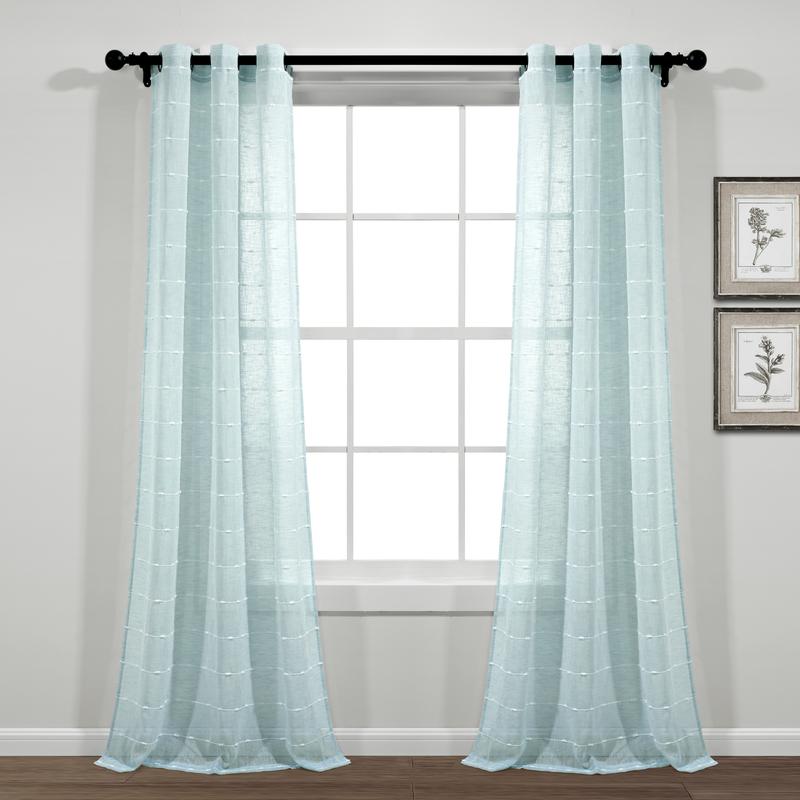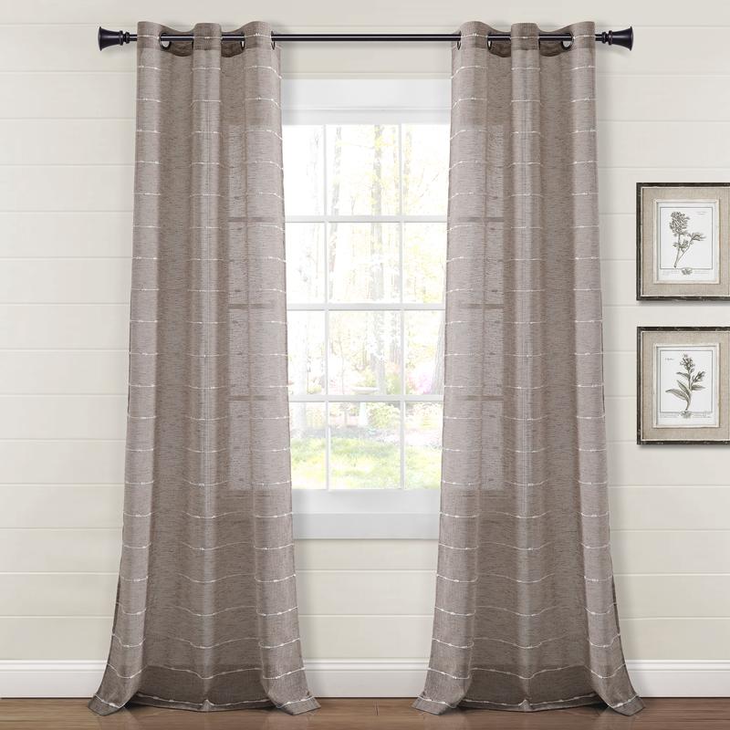 Lush Decor Farmhouse Textured Grommet Sheer Window Curtain Panel Set